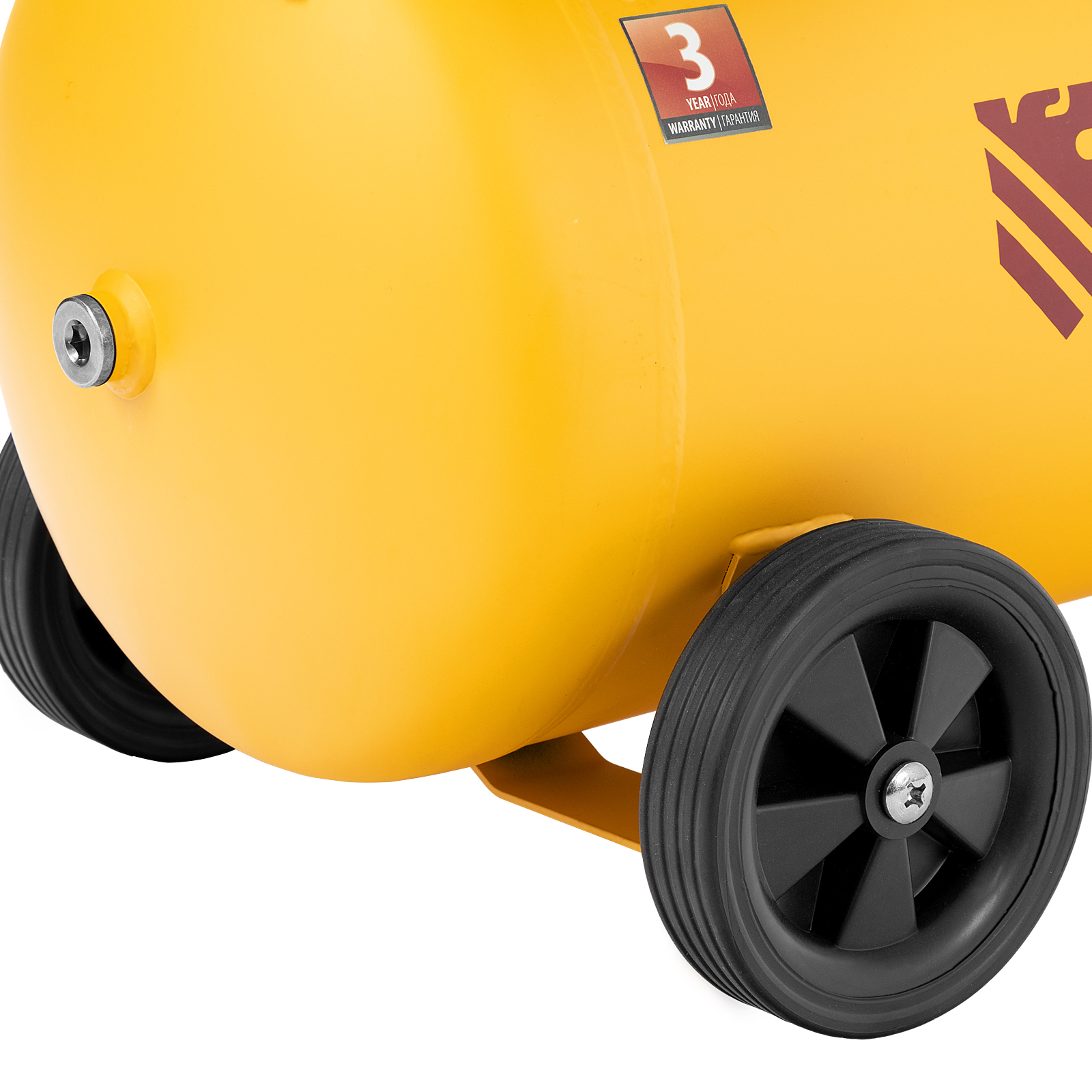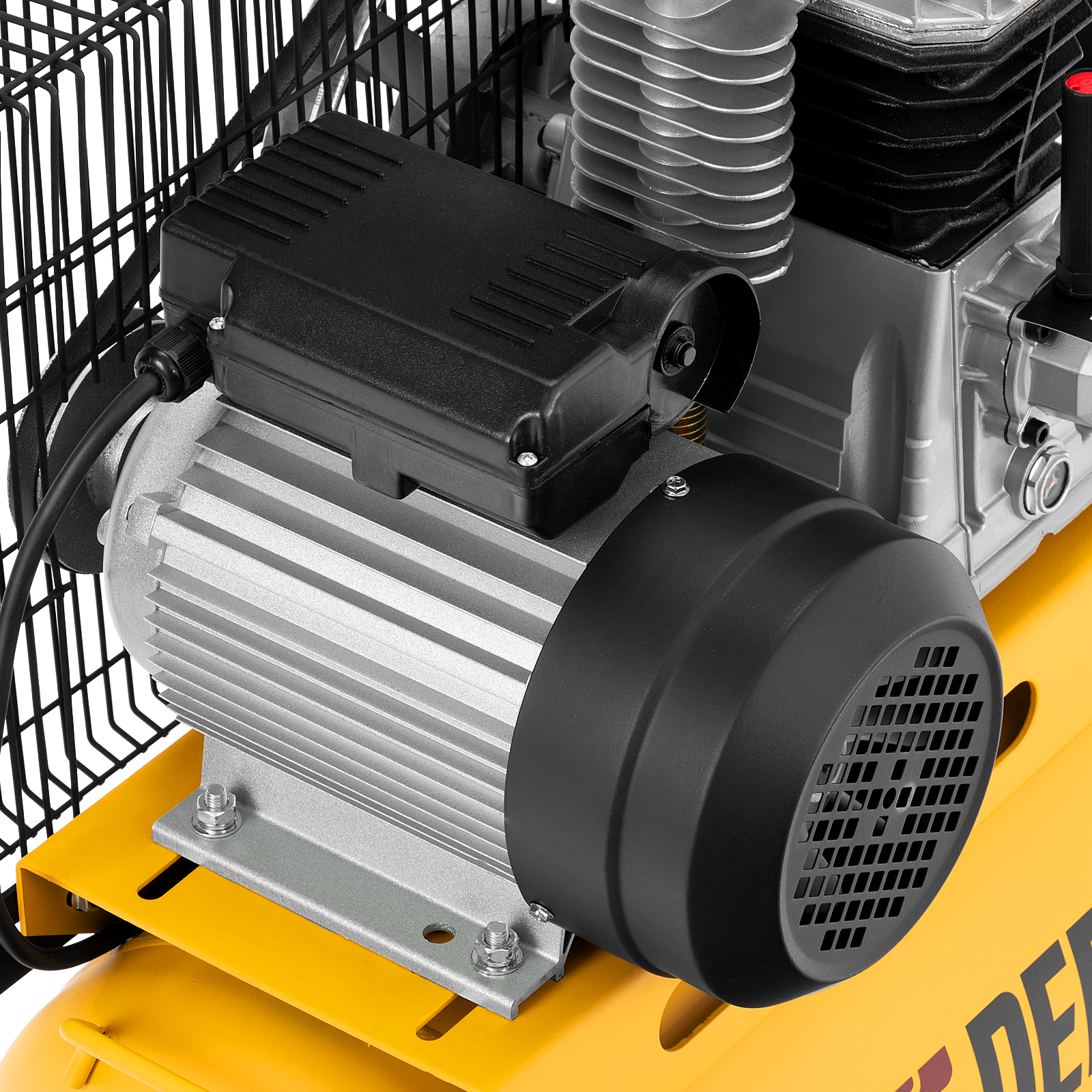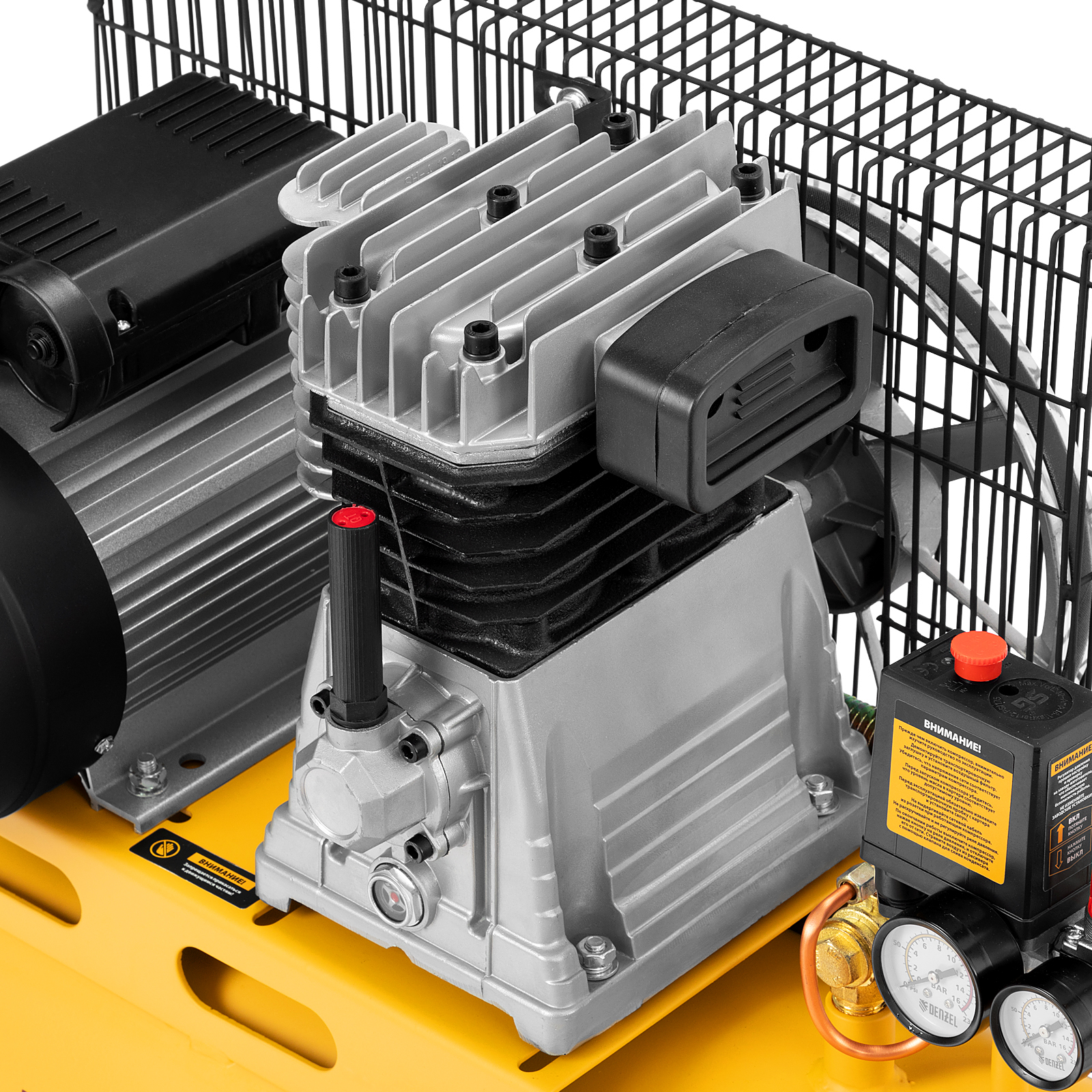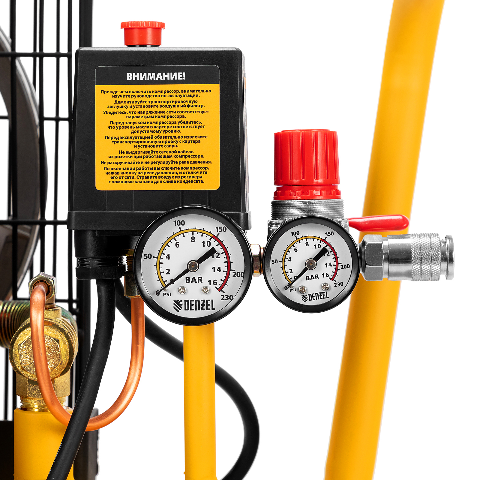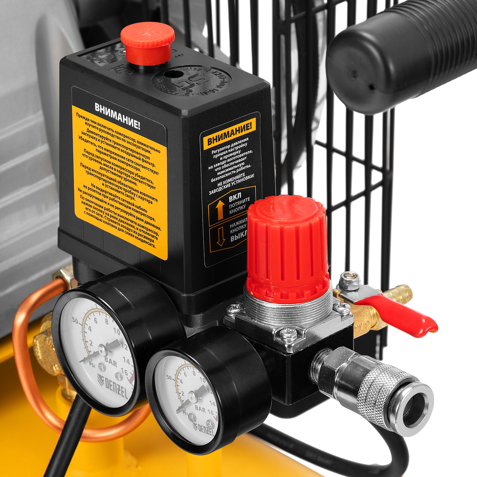 Компрессор воздушный масляный Denzel BCI2300/50 58113 мощностью 2,3 кВт и объемом ресивера 50 л производит 400 л сжатого воздуха в минуту. Это позволяет накачивать шины, прочищать инструменты и технику, изготавливать и собирать изделия на мебельных фабриках с помощью пневмоинструмента. Если недостаточно одного ресивера, можно присоединить второй через порт прямого подключения, тем самым увеличив объем накапливаемого воздуха.ПреимуществаТеплозащита — температурный датчик предохраняет двигатель от поломок в случае перегрева.Защита по току — работа компрессора оперативно останавливается при коротком замыкании или сверхнагрузке, что исключает выход двигателя из строя и продлевает срок его службы.Медная обмотка двигателя — медь менее критична к перегреву по сравнению с алюминием, поэтому компрессор уверенно выдерживает 8-часовую смену.Гальванизированное покрытие — клапанная плита не подвержена коррозии и окислению, пластины клапанов из сверхпрочной японской стали AISI 420 удачно прошли испытания в соляной ванне, что доказывает их высокую прочность даже в условиях повышенной влажности и высокой температуры.Автоматизация работочего процесса — реле давления отключает двигатель при заполнении ресивера и снова включает его, когда объем воздуха падает ниже допустимого уровня.Защита от аварийных ситуаций — предохранительный клапан защищает ресивер от взрыва автоматическим сбросом давления в случаях, если не срабатывает реле.Удобный контроль давления — компрессор оснащен 2-мя манометрами увеличенного диаметра.Защита внутренних частей от загрязнений — воздушный фильтр задерживает пыль и не допускает подсос неочищенного воздуха в ресивер.Высокий ресурс — чугунные цилиндры с увеличенными ребрами отличаются эффективным теплоотводом, а металлизированные прокладки на них не разрушаются под воздействием высоких температур.Надежный приводной ремень — он отличается высоким качеством, поэтому прослужит долгое время, не растягиваясь при длительных работах.Качественный ресивер — толщина стенок ресивера составляет более 2 мм, что обеспечивает прочное соединение стыкующихся поверхностей и исключает протечки.Удобное подключение — коннекторы «Рапид» и «Елочка» позволяют работать с разными пневмомагистралями, делая компрессор незаменимым помощником на рабочей площадке.Снижение уровня вибраций — амортизирующие опоры обеспечивают комфортную работу рядом с компрессором.Легкий слив конденсата — клапан в нижней части ресивера упрощает избавление от оставшегося после рабочей смены воздуха и скопившейся влаги.Гарантия 3 года — высокое качество компрессора подтверждено производителем.
