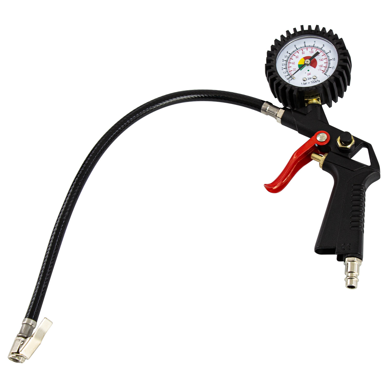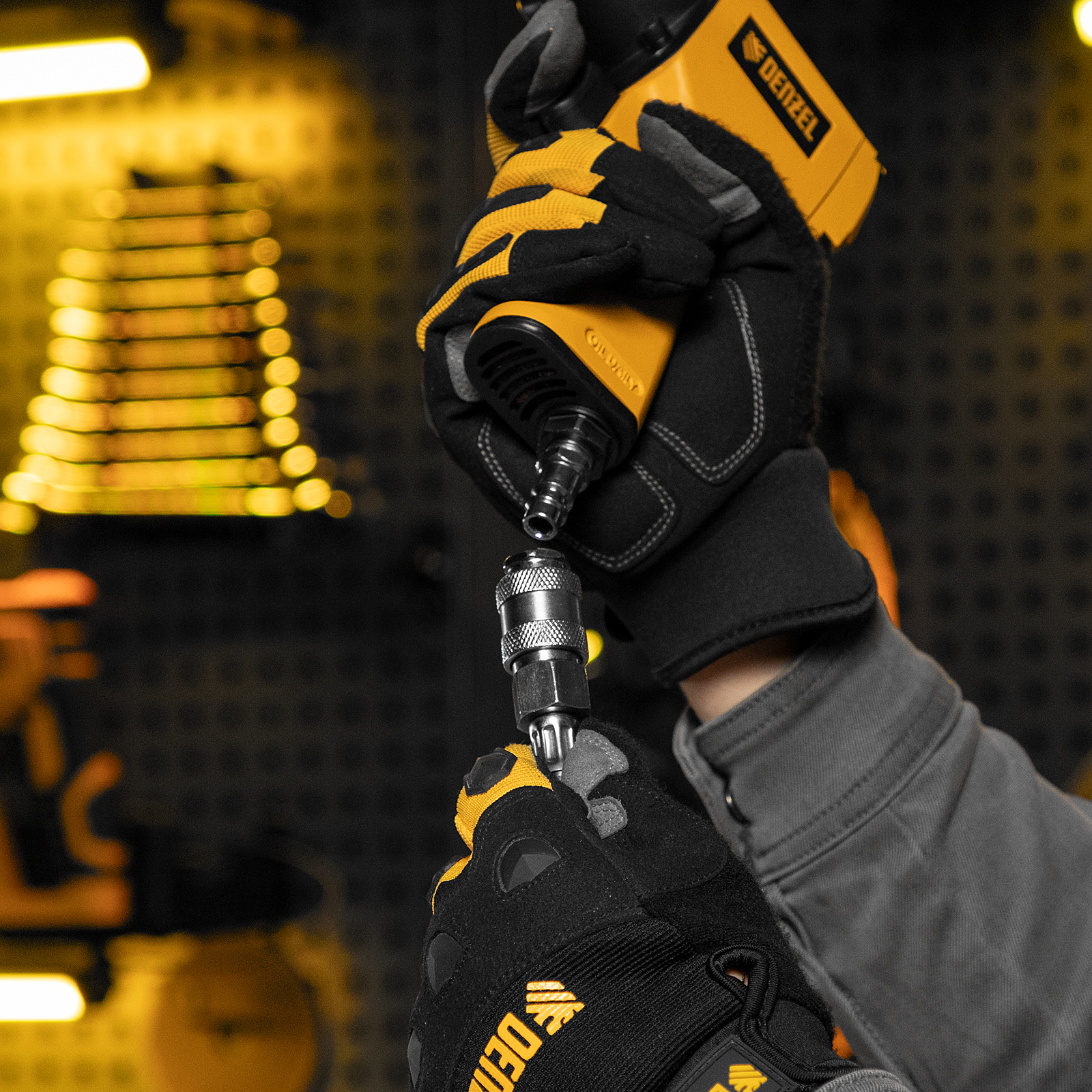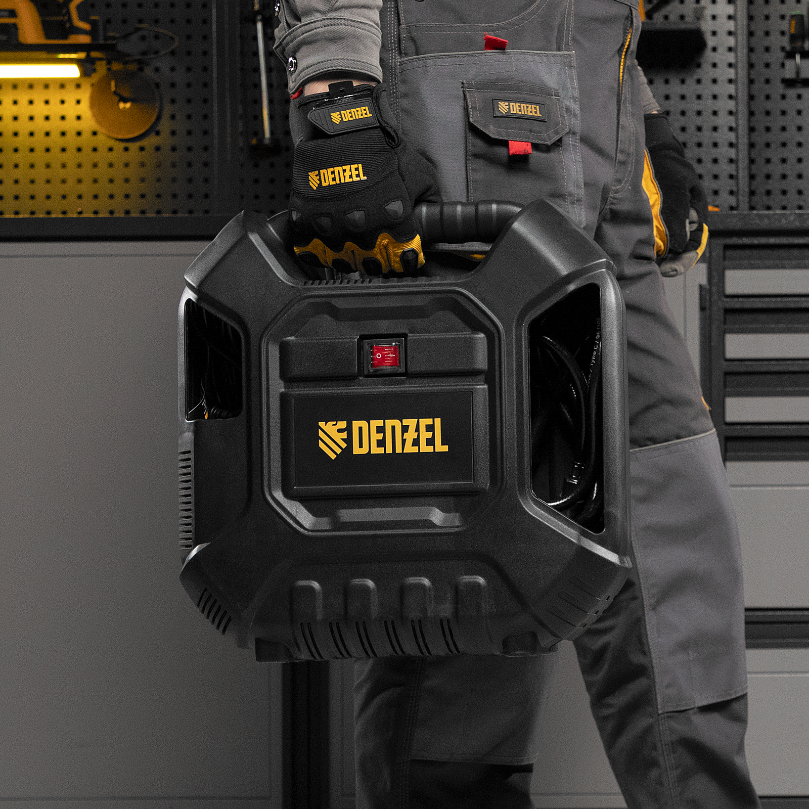 Воздушный безмасляный компрессор Denzel DL1100 58005 мощностью 1,1 кВт и производительностью 180 л/мин предназначен для подключения пневмопистолетов, продувочного инструмента и другого оборудования, исключающего контакт с маслом. Высокой производительности хватит, чтобы подкачать шины, продуть технику, провести частичную подкраску и обеспечить выполнение других технических работ.Компрессор выполнен в виде моноблока, что очень удобно для его хранения, переноски и размещения на рабочей площадке. Отсутствие ресивера и безмасляная технология позволяют получать чистый воздух без примесей влаги и масляных паров. Также отпадает необходимость проверять давление в ресивере и удалять конденсат после рабочего цикла.ПреимуществаКомпактность — в компрессоре предусмотрены отсеки для кабеля питания, аксессуаров и пневмопистолета со шлангом, что позволяет хранить комплектующие в одном месте.Безопасное включение — кнопка пуска закрыта пластиковым кожухом, препятствующим попаданию влаги.Наличие манометра — контролировать давление сжатого воздуха можно по измерительному прибору, расположенному на корпусе пневмопистолета.Термозащита — электродвигатель моментально отключается при превышении допустимой температуры, это позволяет избежать поломок и продлить средний срок службы устройства до 5 лет.Предохранительный клапан — при возникновении избыточного давления происходит автоматическое стравливание газа, что предотвращает возникновение аварийной ситуации.Продуманность до мелочей — прорезиненные опоры гасят вибрации и повышают комфорт работы.Легкость перемещения — ребристая транспортировочная ручка делает транспортировку кейса простой и удобной.Полная комплектация — к компрессору прилагается набор переходников и насадок, универсальный пневмопистолет, быстросъемное соединение со сменными соплами для накачивания шин и продувки воздухом.Гарантия 3 года — высокое качество компрессора подтверждено производителем.
