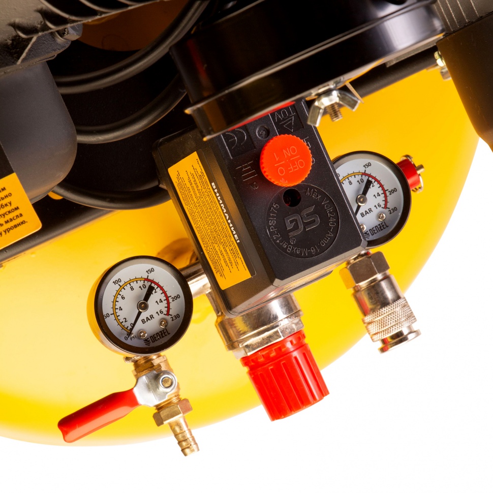 Компрессор воздушный с ременным приводом Denzel BCV2200/100V 58112 мощностью 2,3 кВт, с ресивером объемом 100 л используется для обеспечения сжатым воздухом таких инструментов, как краскораспылитель, гайковерт, гвоздезабивной пистолет, дрель, пистолет для накачки шин и пр. Высокая производительность 440 л/мин позволяет использовать его не только в загородных домах и гаражах, но и на фабриках, станциях технического обслуживания автомобилей, в различных мастерских.,Сжатый воздух накапливается в ресивере объемом 100 литров. Он располагается вертикально, что позволяет сэкономить место на рабочей площадке. Для устойчивости компрессор крепится к стене или полу.ПреимуществаВысокий ресурс — чугунные цилиндры с большими ребрами охлаждения меньше поддаются трению и лучше отводят тепло, вал из литого чугуна динамически сбалансирован.Медная обмотка — двигатель устойчив к длительным нагрузкам.Защита от перегрева — температурный датчик отключает мотор при сильном нагреве, предохраняя его от поломок.Защита от перегрузки — автоматическое выключение срабатывает при превышении порогового значения по току, что позволяет сохранить ресурс двигателя.Высокая прочность — ресивер выполнен из стали толщиной почти 3 ммЗащита от протечек масла — детали картера идеально стыкуются, крышка плотно закрывается.Автоматизация рабочего процесса — реле регулирует давление в ресивере, это экономит время пользователя, позволяет поддерживать производительность на высоком уровне и не допускает аварийных ситуаций.Безопасность — предохранительный клапан моментально сбрасывает лишний воздух и понижает давление, если реле не срабатывает вовремя.Клапаны из японской нержавеющей стали AISI420 — герметичность клапанного механизма сохраняется даже в условиях высоких температур, повышенной влажности и интенсивных нагрузок.Полный контроль рабочего процесса — 2 манометра позволяют снять точные показания о давлении в ресивере и на подаче к пневмоинструменту.Подача чистого воздуха — фильтрующий элемент из гофрированной бумаги задерживает даже мелкие пылевые частички, при этом пропуская воздух быстрее, чем поролоновые аналоги. В результате поршневая система двигателя защищается от повреждений.Широкие возможности — конструкцией предусмотрен штуцер для подключения дополнительного ресивера или пневмолинии.Простая подготовка к работе — быстросъемные пневмоконнекторы Рапид (Евро) упрощают подключение пневмоинструмента.