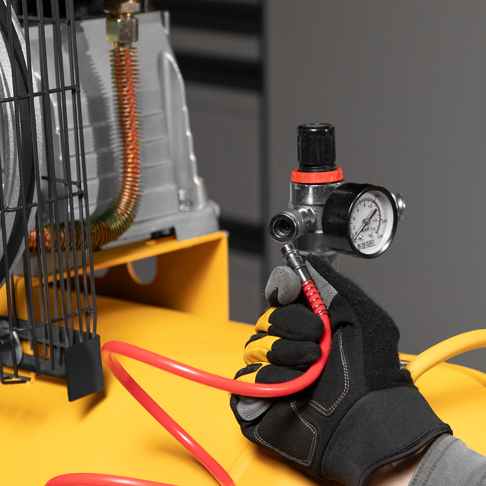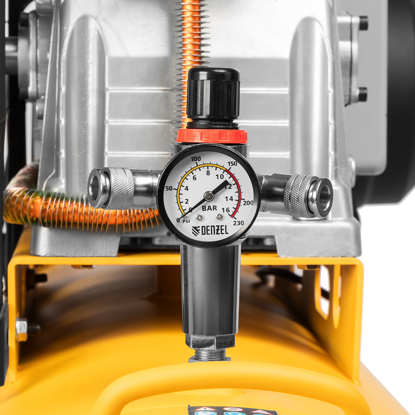 Компрессор воздушный Denzel BCI3000-T/200 58119 мощностью 3 кВт, с ременным приводом, работает со скоростью 530 л/мин, накапливая сжатый воздух в ресивере объемом 200 литров. Оптимально подходит для профессионального применения. Двигатель не боится высоких нагрузок, поэтому компрессор можно использовать на фабриках, в автосервисах, мастерских и при создании магистралей воздухоподачи. При необходимости можно напрямую подключить второй накопитель.ПреимуществаДвойная защита — в случае перегрева или перегрузки двигатель отключается, что позволяет сохранить его на долгие годы и избежать износа основного узла.Устойчивая к коррозии клапанная плита — гальваническое покрытие препятствует разрушению деталей, наиболее подверженных нагрузкам в условиях влажной среды, что обеспечивает защиту от разгерметизации и высокий ресурс работы.Надежные и долговечные клапаны — японская нержавеющая сталь AISI 420 выдерживает длительную нагрузку и не разрушается под воздействием высоких температур.Автоматизация работы — исполнительное устройство (реле) позволяет избежать выхода давления за пределы нормы и сохранить производительность на высоком уровне.Автоматический спускной клапан — лишнее давление быстро сбрасывается без вреда для компрессора.2 больших манометра — мастеру удобно отслеживать давление в ресивере и на выходной магистрали.Регулировка давления на выходе — можно подстроить работу компрессора под разное оборудование, добиваясь таким образом экономичного потребления энергии и необходимого результата.Очистка входящего потока — весь воздух фильтруется перед подачей в компрессор, поэтому внутренние части защищены от грязи и разрушений.Простая подготовка к работе — пневмоинструмент быстро подключается через разъемы «Рапид» и «Елочка», а также дополнительный штуцер для прямой стыковки с пневмолинией.Чугун и увеличенные ребра — 3 цилиндра практически не подвержены перегреву благодаря улучшенному теплоотводу, поэтому они не разрушаются при длительных нагрузках.Маневренность — 2 пары колес позволяют легко перемещать компрессор и разворачивать его на месте.Удобная транспортировка — прочная ручка выдерживает вес компрессора и позволяет без труда загружать его в машину или перемещать в нужное место.Клапан для слива конденсата — скопившаяся за день влага и оставшийся воздух быстро удаляются из ресивера, что обеспечивает защиту от коррозии.Гарантия 3 года — высокое качество компрессора подтверждено производителем.