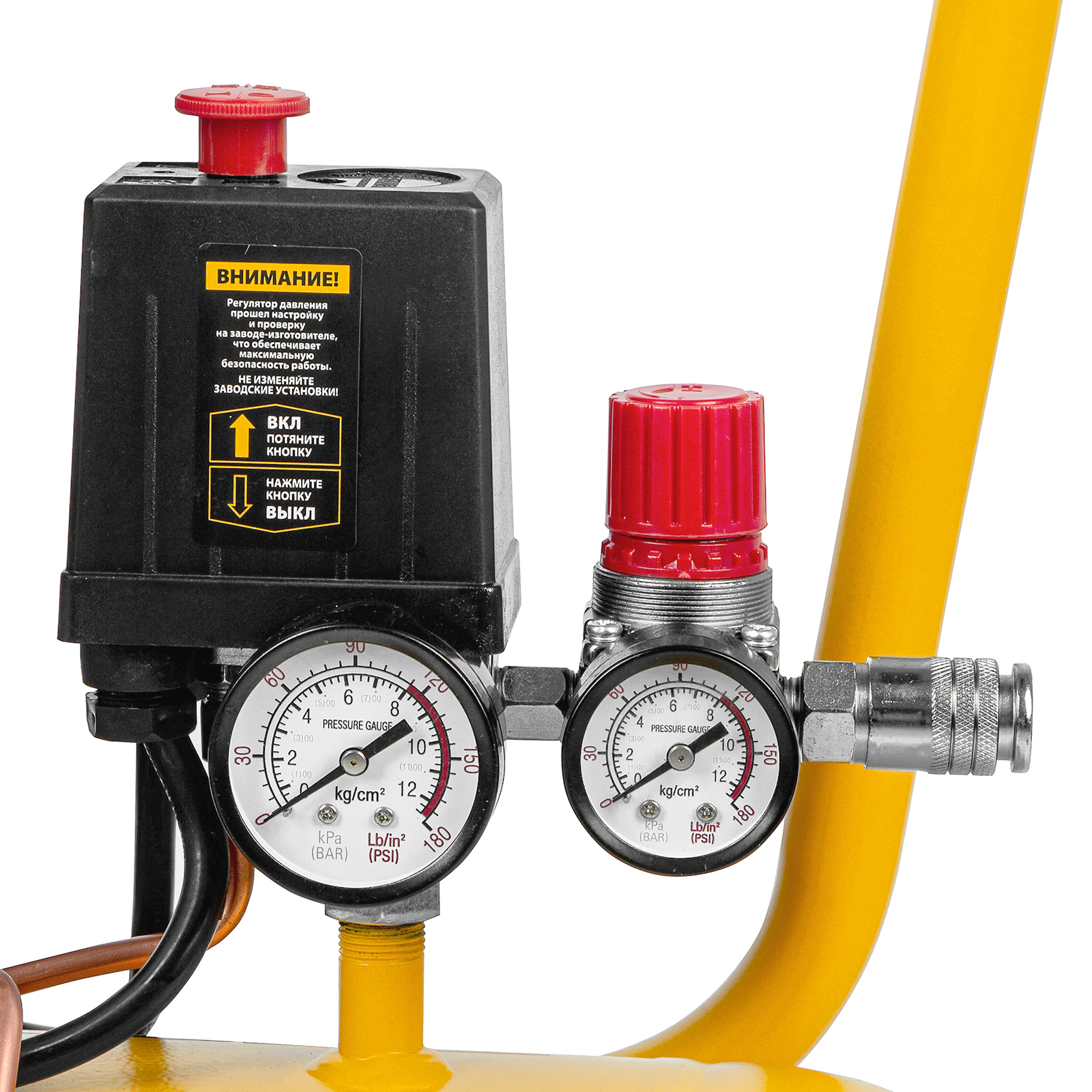 Воздушный компрессор с прямым приводом Denzel DCV2200/50 58167 мощностью 2,2 кВт и производительностью на входе 380 л/мин, с объемом ресивера 50 л, подходит для обеспечения длительной работы пневмогайковерта, пневмозубила, пневмодрели, пневмомолотка и другого пневмоинструмента. Быстроразъемные коннекторы Euro (Rapid) облегчают подключение пневмомагистралей. Эффективная система смазки снижает износ деталей и уменьшает нагрузку на двигатель, что позволяет использовать компрессор в профессиональной сфере.ПреимуществаНадежность и долговечность — коленвал и цилиндры изготовлены из чугуна, ресивер сварен из стальных листов толщиной 2,5 мм.Безопасная эксплуатация — при перегрузке по току срабатывает аварийное отключение.Защита от перегрева — при превышении допустимой температуры двигатель останавливается, что продлевает его ресурс.Высокое качество изготовления — детали картера в местах стыка прошли механическую обработку с дополнительной шлифовкой, поэтому риск протечки масла минимален.Улучшенный теплоотвод — оребренные трубки воздуховода обеспечивают эффективное охлаждение поступающего в ресивер воздуха.Тщательная фильтрация воздушного потока — уплотнители на фильтрах исключают попадание пыли в цилиндры.Два манометра — удобно контролировать давление на выходе и в ресивере.Быстрое удаление конденсата — для откручивания сливной пробки с подпальцевыми упорами не требуется специальный инструмент.Удобное перемещение по рабочей площадке — у компрессора имеются колеса и ручка.Гарантия 3 года — высокое качество оборудования подтверждено производителем.