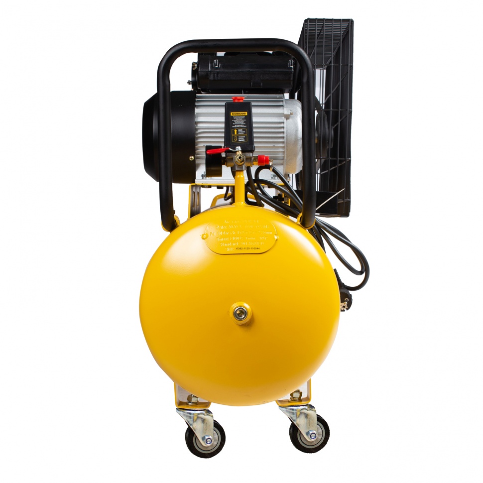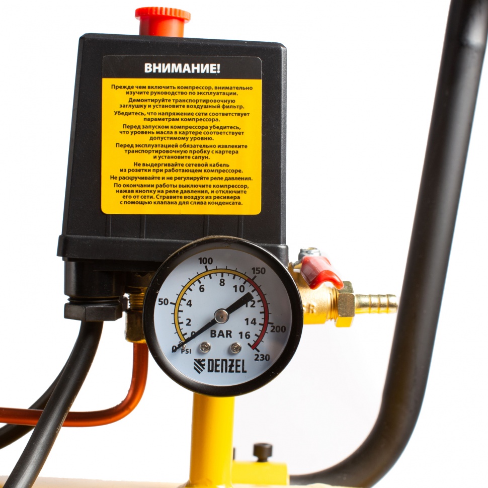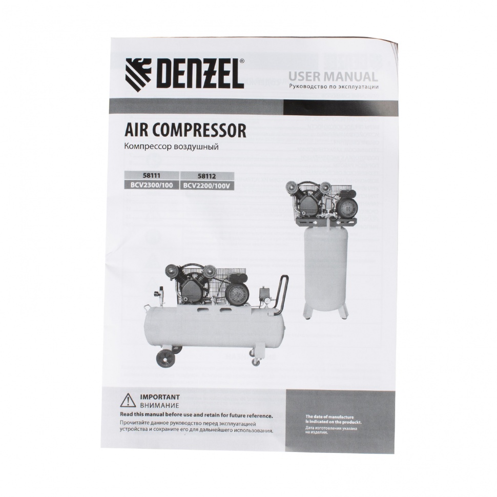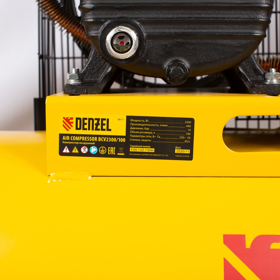 Компрессор Denzel BCV2300/100 58111 мощностью 2,3 кВт, с ресивером на 100 л, способен производить 440 литров сжатого воздуха в минуту. К нему могут подключаться сразу 2 пневмоинструмента, например, продувочный пистолет и плазморез. Высокие показатели производительности позволяют использовать данный компрессор в подсобных хозяйствах, гаражах, на станциях техобслуживания автомобилей, мебельных фабриках и т.д.Отличительная особенность компрессора по сравнению с аналогами мощностью 2,3 кВт — это фильтр-влагоотделитель, установленный на выходе. Он препятствует попаданию конденсата и частиц масла в пневмомагистраль, что особенно важно при малярных работах и продувке элементов с электрическим соединением.ПреимуществаВысокий ресурс — модель BCV2300/100 оснащена надежным чугунным цилиндром и износостойким поршневым блоком с эффективным охлаждением.Двигатель не перегреется — встроенная термозащита моментально срабатывает при температуре больше 130°С и не дает компрессору включиться, пока он не остынет. Такая система предохраняет поломку основных узлов и продлевает срок службы электромотора.Защита по току — сжатие воздуха прекратится при сверхнагрузках или коротком замыкании, чтобы избежать аварийной ситуации и обеспечить сохранность двигателя.Медная обмотка двигателя — медь позволяет повысить производительность, при этом более устойчива к перегреву по сравнению с алюминием, поэтому ресурс двигателя увеличивается.Гальванизированное покрытие — клапанная плита не подвержена коррозии и окислению, пластины клапанов из сверхпрочной японской стали AISI 420 удачно прошли испытания в соляной ванне, что доказывает их высокую прочность даже в условиях повышенной влажности и высокой температуры.2 манометра — пользователю доступен контроль за давлением в ресивере и на выходной магистрали, поэтому при необходимости можно оперативно отрегулировать работу компрессора.Автоматизация работы — реле отключает двигатель при достижении максимально допустимого давления и автоматически включает, когда оно ниже установленной нормы.Клапан сброса давления — если реле не сработает при давлении выше 10 бар, избыточный воздух автоматически сбросится, эта система служит дополнительной подстраховкой и гарантирует безопасность работы.Прочность и надежность — ресивер выполнен из стали толщиной более 2,75 мм и защищен от протечек надежным сварным соединением.Воздушный фильтр — металлический корпус с картриджем из гофрированной бумаги позволяет эффективно очищать входящий поток от загрязняющих частиц. Это обеспечивает сохранность и износоустойчивость поршневой системы двигателя.Простое удаление конденсата — кран оснащен удобными подпальцевыми упорами, поэтому легко открывается для слива накопившейся влаги.Быстрая транспортировка — колеса и П-образная ручка позволяют легко разворачивать и транспортировать компрессор в нужное место.Гарантия 3 года — высокое качество компрессора подтверждено производителем.