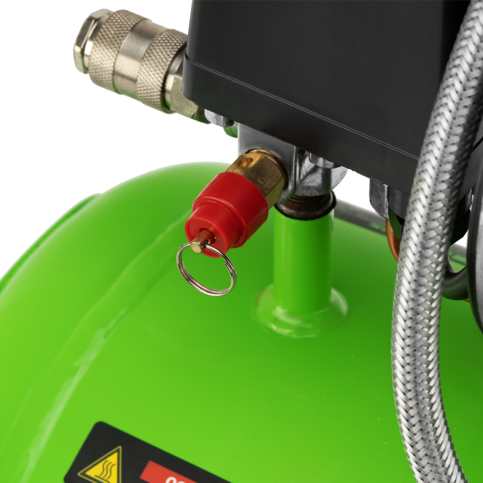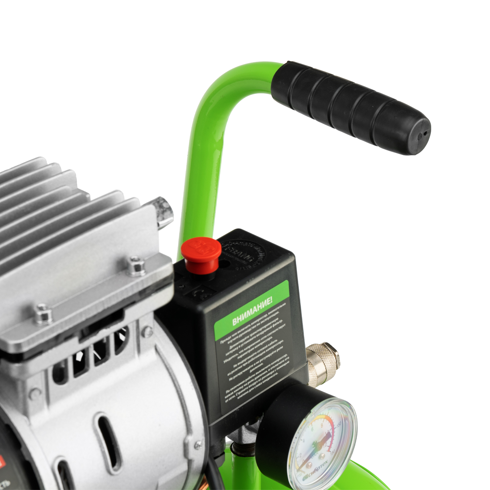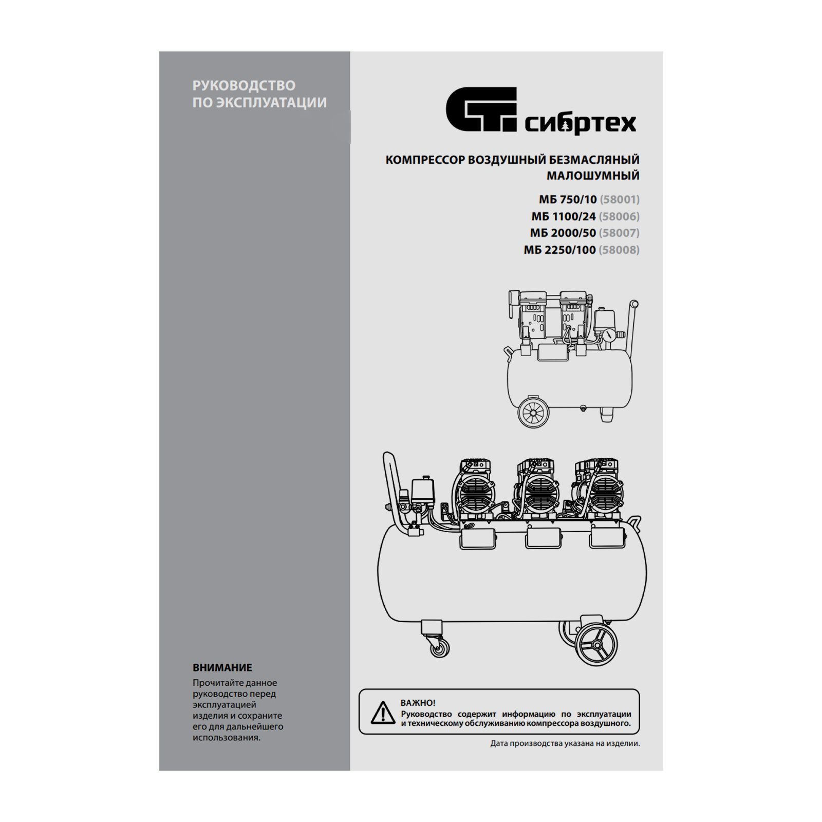 Безмасляный малошумный компрессор Сибртех МБ 1100/24 58006 мощностью 1100 Вт и объемом ресивера 24 л имеет производительность на входе 170 л/мин и сжимает воздух под давлением до 8 бар. Используется для обеспечения функционирования пневмоинструмента, например, краскораспылителя или пневматического шуруповерта. Для работы устройства не требуется масло, поэтому воздух на выходе не содержит его частиц. Компрессор оптимален для проведения покрасочных работ и продувки электронных компонентов.Одна из ключевых особенностей компрессора — низкий уровень шума (не превышает 70 дБ), позволяющий использовать устройство в жилом помещении без дискомфорта для людей.ПреимуществаТермозащита — при превышении допустимой температуры двигатель останавливается, что предотвращает его поломку.Простое подключение — выходной быстросъемный коннектор позволяет подсоединить пневмоинструмент одним движением.Контроль рабочих параметров — компрессор оборудован механическим манометром для отслеживания давления.Безопасная работа — предохранительный клапан защищает от превышения максимально допустимого давления.Автономная работа — реле давления останавливает двигатель по достижении максимального рабочего давления и запускает его, если давление опускается до минимального.Продуманная конструкция — виброопора обеспечивает устойчивость компрессора и гасит колебания, возникающие во время работы.Комфортная транспортировка — производителем предусмотрена ручка и 2 колеса для перемещения.
