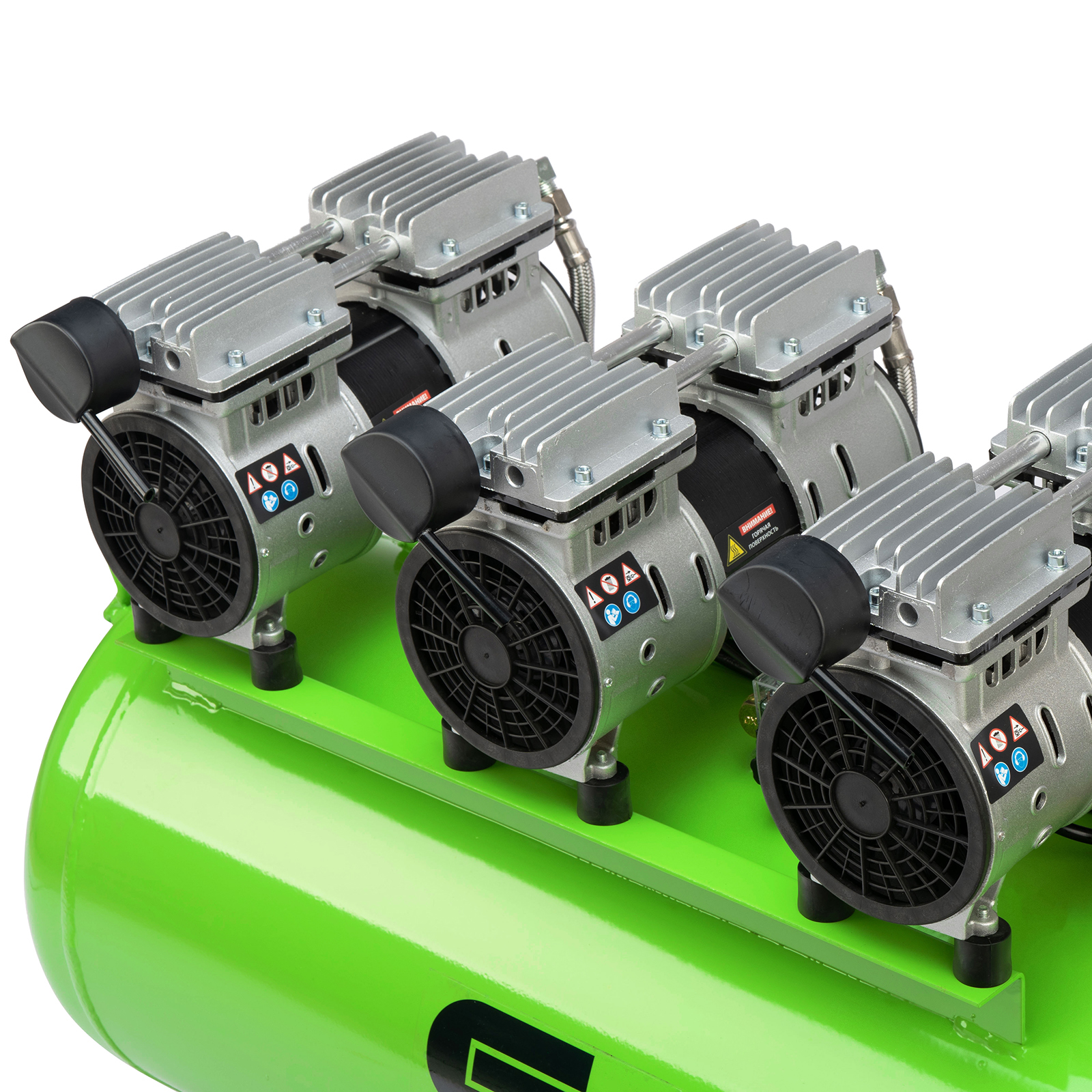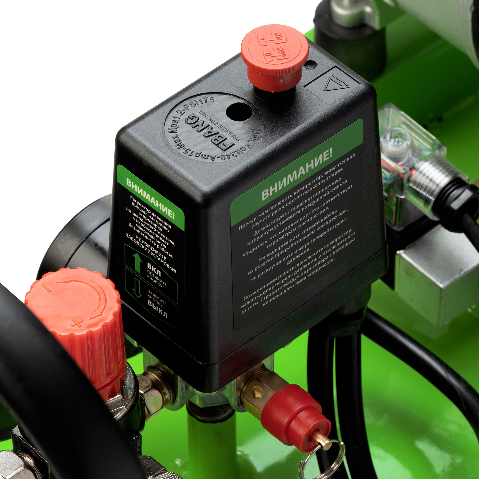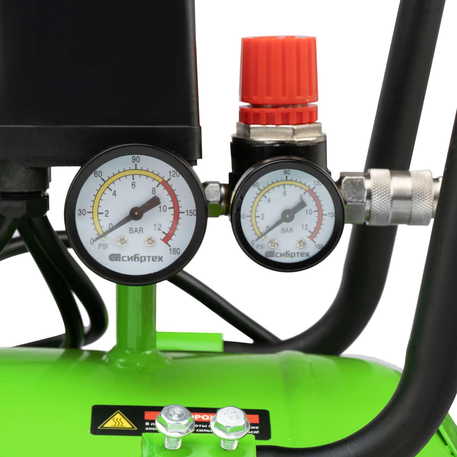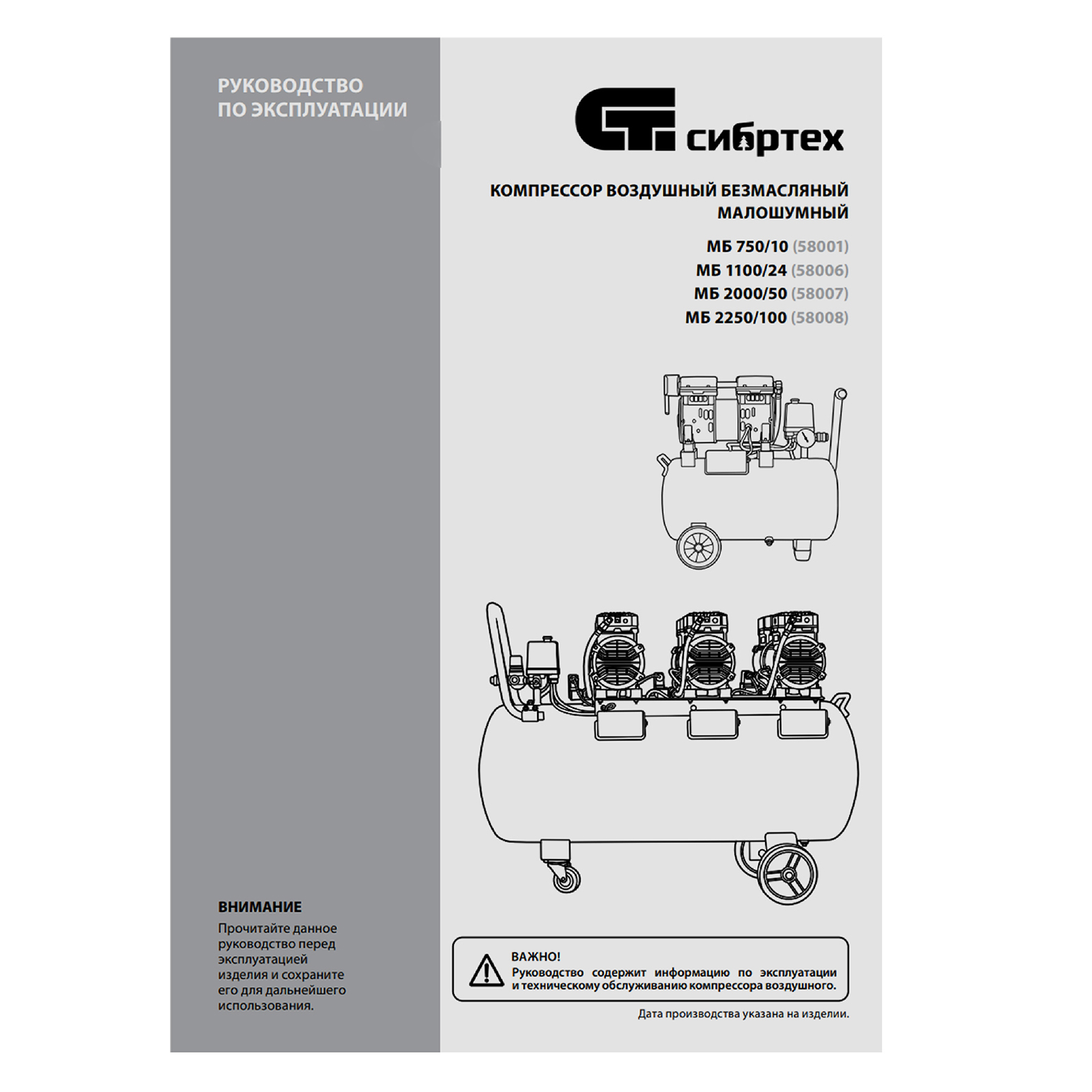 Безмасляный малошумный компрессор Сибртех МБ 2250/100 58008 мощностью 2250 Вт и объемом ресивера 100 л имеет производительность на входе 400 л/мин и сжимает воздух под давлением до 8 бар. Используется для обеспечения функционирования пневмоинструмента, например, краскораспылителя, перфоратора или пневматического шуруповерта. Для работы устройства не требуется масло, поэтому воздух на выходе не содержит его частиц. Компрессор оптимален для проведения покрасочных работ и продувки электронных компонентов.Одна из ключевых особенностей компрессора — низкий уровень шума (не превышает 70 дБ), позволяющий использовать устройство в жилом помещении без дискомфорта для людей.ПреимуществаТермозащита — при превышении допустимой температуры двигатель останавливается, что предотвращает его поломку.Простое подключение — выходной быстросъемный коннектор позволяет подсоединить пневмоинструмент одним движением.Контроль рабочих параметров — компрессор оборудован механическим манометром для отслеживания давления.Безопасная работа — предохранительный клапан защищает от превышения максимально допустимого давления.Автономная работа — реле давления останавливает двигатель по достижении максимального рабочего давления и запускает его, если давление опускается до минимального.Легкий разворот и комфортная транспортировка — производителем предусмотрена ручка, а также 2 больших колеса и 1 поворотное.