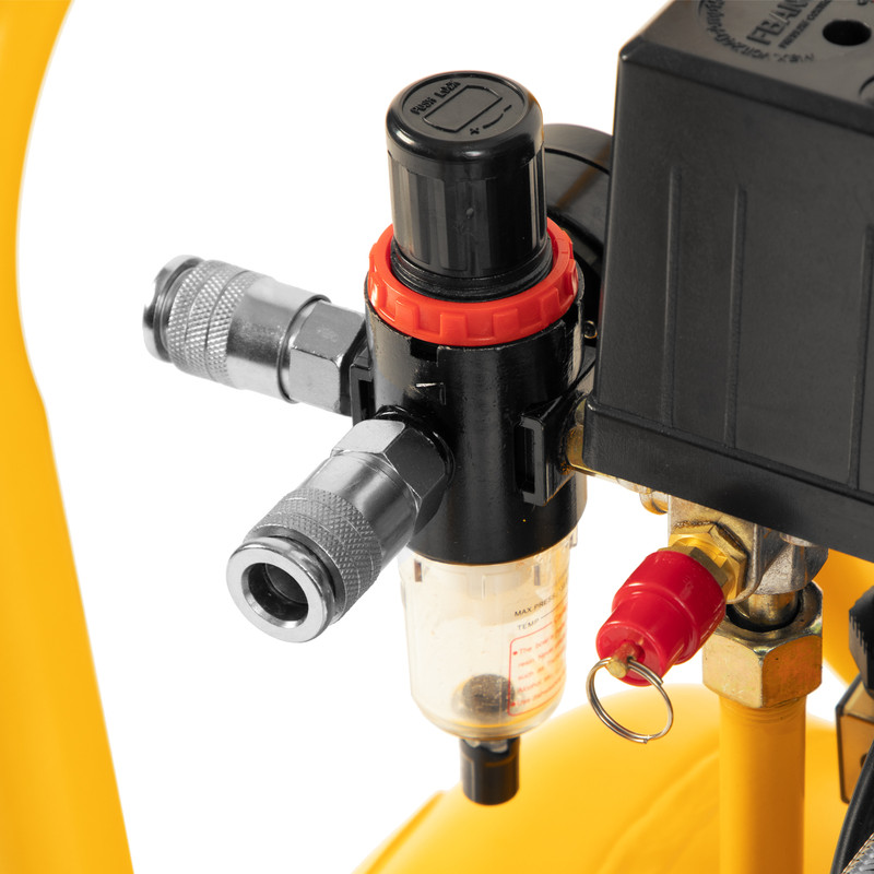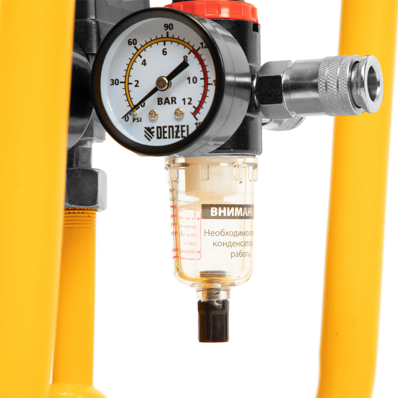Безмасляный малошумный компрессор Denzel DLS 1500/50 58027 мощностью 1500 (2 х 750) Вт, объемом ресивера 50 л и производительностью 260 л/мин предназначен для обеспечения пневмоинструмента сжатым воздухом, подаваемым под давлением до 8 бар. Позволяет подключить пневматический заклепочник, дрель и т. д. Оптимален для работы с краскопультом и для продувки электронных компонентов, т. к. в сжатом воздухе отсутствуют частицы масла. Компрессор пригодится в мастерской, гараже, на строительной площадке.ПреимуществаНизкий уровень шума — работа компрессора не вызывает дискомфорт, его можно использовать в помещении или на дачном участке.Высокий ресурс — цилиндры с антифрикционным покрытием обладают повышенной устойчивостью к износу.Термозащита — в случае превышения максимально допустимой температуры двигатель останавливается для предотвращения выхода из строя.Автономность — реле давления обеспечивает автоматическое отключение двигателя по достижении максимального рабочего давления и его запуск после снижения давления до минимального.Регулятор давления на выходе — можно выбрать оптимальный режим подачи воздуха в соответствии с характеристиками пневмоинструмента.Безопасная работа — клапан сброса избыточного давления предотвращает возникновение аварийных ситуаций.Высокое качество очистки воздуха — фильтры надежно задерживают посторонние частицы, а влагоотделитель препятствует попаданию конденсата в пневмомагистраль.Контроль давления в ресивере и на выходной магистрали — компрессор оборудован двумя манометрами.Простая подготовка к работе — благодаря быстросъемному выходному коннектору подключение пневмоинструмента занимает несколько секунд.Быстрое удаление конденсата — сливной клапан легко откручивается без использования инструмента.Снижение уровня вибраций — резиновые опоры гасят колебания, возникающие во время работы.Мобильность — компрессор оборудован ручкой и 2 колесами для удобного перемещения.Гарантия 3 года — надежность компрессора подтверждена производителем.