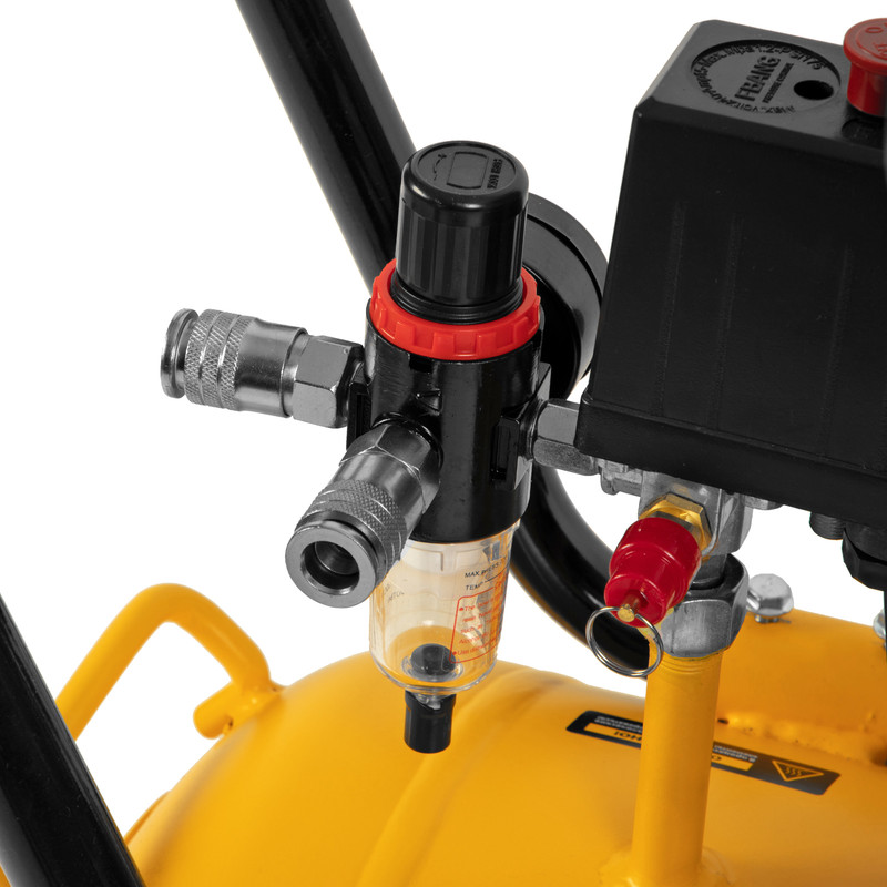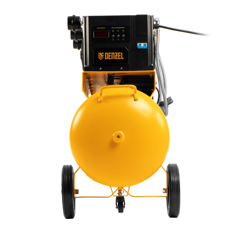 Безмасляный малошумный компрессор Denzel DLS 2550/100 58029 с блоком управления, мощностью 2250 (3 х 750) Вт, объемом ресивера 100 л и производительностью 410 л/мин предназначен для обеспечения пневмоинструмента сжатым воздухом, подаваемым под давлением до 8 бар. Позволяет подключить пневматический заклепочник, дрель, шлифмашину и т.д. Оптимален для работы с краскопультом и для продувки электронных компонентов, т. к. в сжатом воздухе отсутствуют частицы масла. Компрессор пригодится в мастерской, гараже, на строительной площадке.ПреимуществаУдобный блок управления — в зависимости от поставленных задач можно включать каждый из 3 компрессорных блоков по отдельности или все сразу, что позволяет экономить электроэнергию и снижать уровень шума, а также повышает ресурс компрессора.Низкий уровень шума — работа компрессора не вызывает дискомфорт, его можно использовать в помещении или на дачном участке.Высокий ресурс — цилиндры с антифрикционным покрытием обладают повышенной устойчивостью к износу.Термозащита — в случае превышения максимально допустимой температуры двигатель останавливается для предотвращения выхода из строя.Автономность — реле давления обеспечивает автоматическое отключение двигателя по достижении максимального рабочего давления и его запуск после снижения давления до минимального.Регулятор давления на выходе — можно выбрать оптимальный режим подачи воздуха в соответствии с характеристиками пневмоинструмента.Безопасная работа — клапан сброса избыточного давления предотвращает возникновение аварийных ситуаций.Высокое качество очистки воздуха — фильтры надежно задерживают посторонние частицы, а влагоотделитель препятствует попаданию конденсата в пневмомагистраль.Контроль давления в ресивере и на выходной магистрали — компрессор оборудован двумя манометрами.Простая подготовка к работе — благодаря быстросъемному выходному коннектору подключение пневмоинструмента занимает несколько секунд.Быстрое удаление конденсата — сливной клапан легко откручивается без использования инструмента.Мобильность — компрессор оборудован ручкой и 3 колесами (из них 1 поворотное) для удобного разворота и перемещения.Гарантия 3 года — надежность компрессора подтверждена производителем.