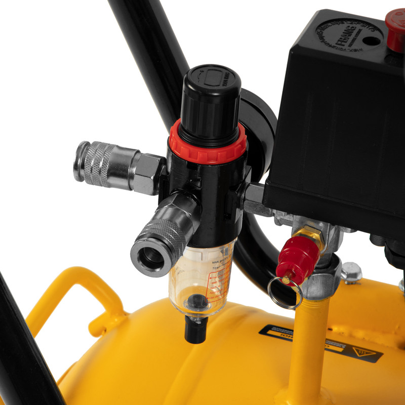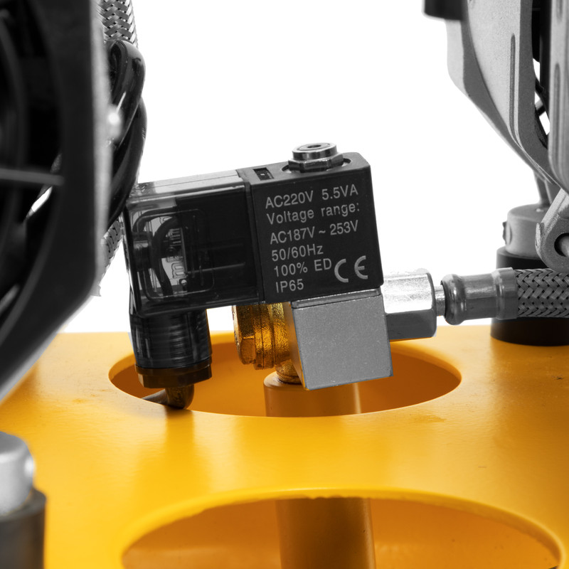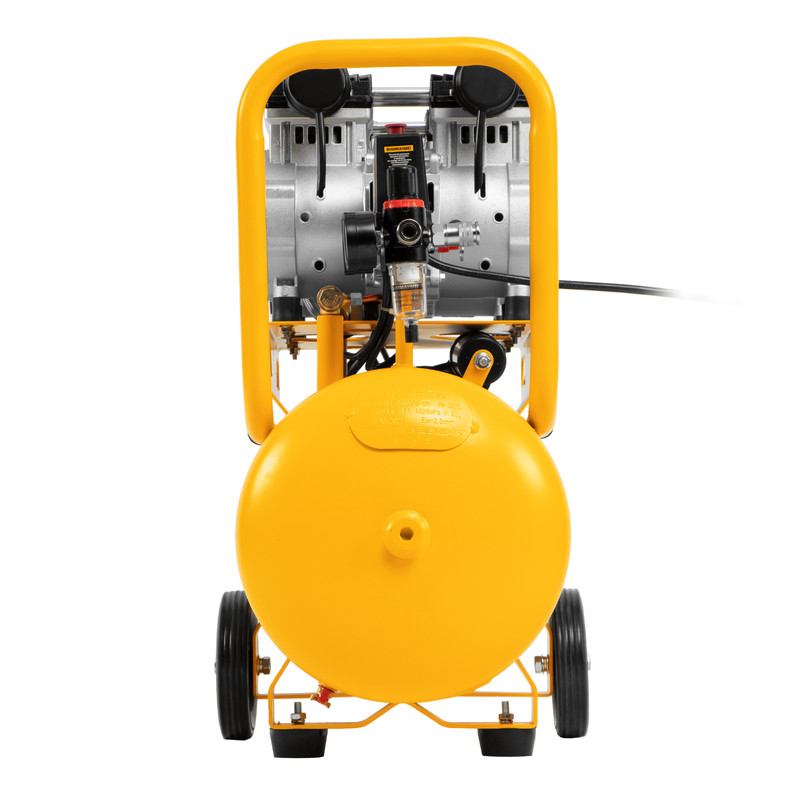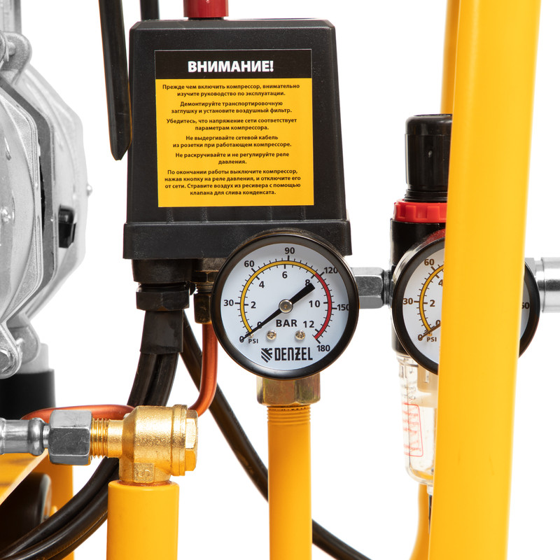 Безмасляный малошумный компрессор Denzel DLS 2200/50 58031 мощностью 2200 (2 х 1100) Вт, объемом ресивера 50 л и производительностью 380 л/мин предназначен для обеспечения пневмоинструмента сжатым воздухом, подаваемым под давлением до 8 бар. Частота вращения вала составляет 2800 об/мин, что позволило добиться увеличения производительности более чем на 40%. Компрессор позволяет подключить пневматический заклепочник, дрель, шлифмашину и т. д. Оптимален для работы с краскопультом и для продувки электронных компонентов, т. к. в сжатом воздухе отсутствуют частицы масла. Компрессор пригодится в мастерской, гараже, на строительной площадке.ПреимуществаНизкий уровень шума — работа компрессора не вызывает дискомфорт, его можно использовать в помещении или на дачном участке.Высокий ресурс — цилиндры с антифрикционным покрытием обладают повышенной устойчивостью к износу.Термозащита — в случае превышения максимально допустимой температуры двигатель останавливается для предотвращения выхода из строя.Автономность — реле давления обеспечивает автоматическое отключение двигателя по достижении максимального рабочего давления и его запуск после снижения давления до минимального.Регулятор давления на выходе — можно выбрать оптимальный режим подачи воздуха в соответствии с характеристиками пневмоинструмента.Безопасная работа — клапан сброса избыточного давления предотвращает возникновение аварийных ситуаций.Высокое качество очистки воздуха — фильтры надежно задерживают посторонние частицы, а влагоотделитель препятствует попаданию конденсата в пневмомагистраль.Контроль давления в ресивере и на выходной магистрали — компрессор оборудован двумя манометрами.Простая подготовка к работе — благодаря быстросъемному выходному коннектору подключение пневмоинструмента занимает несколько секунд.Быстрое удаление конденсата — сливной клапан легко откручивается без использования инструмента.Снижение уровня вибраций — резиновые опоры гасят колебания, возникающие во время работы.Мобильность — компрессор оборудован ручкой и 2 колесами для удобного перемещения.Гарантия 3 года — надежность компрессора подтверждена производителем.