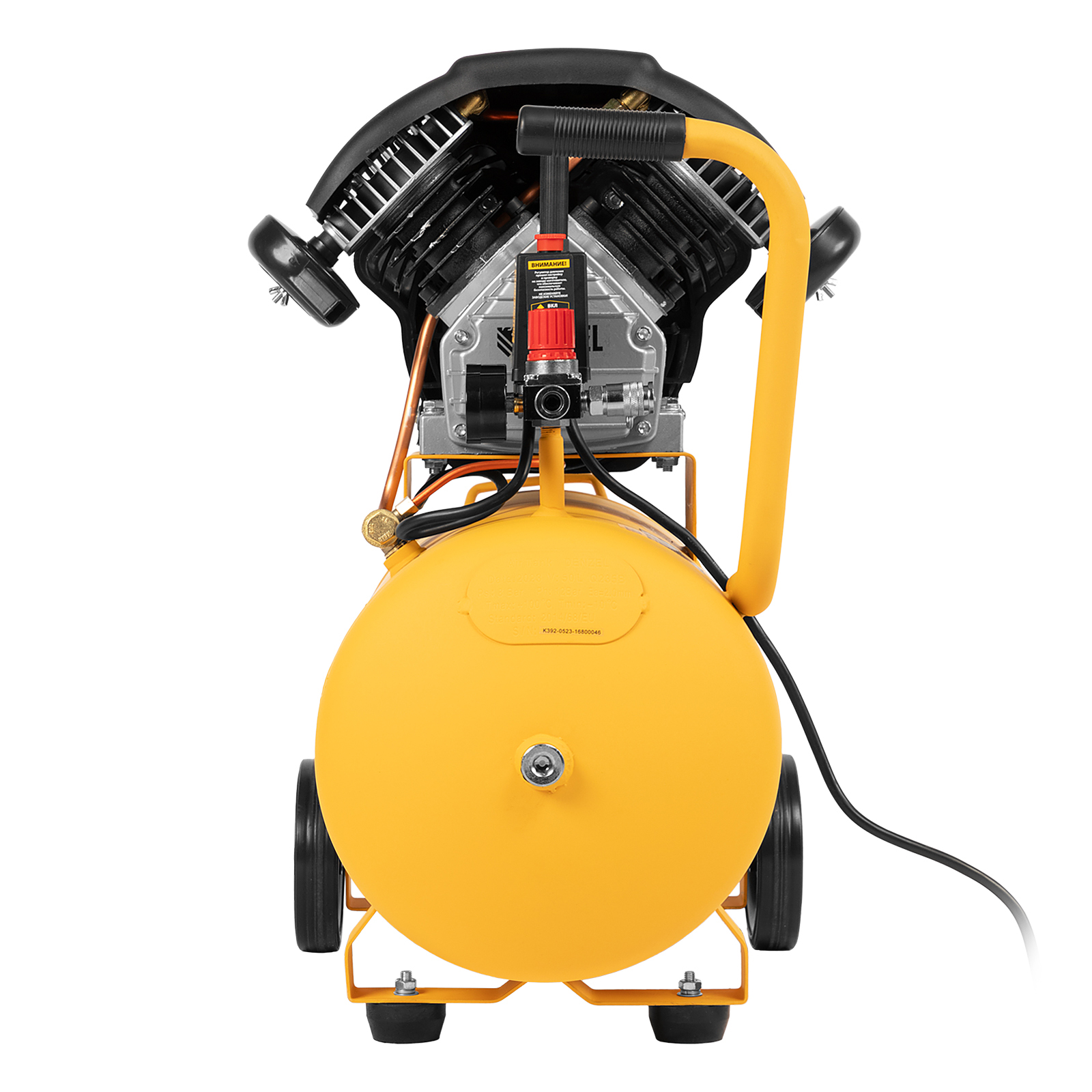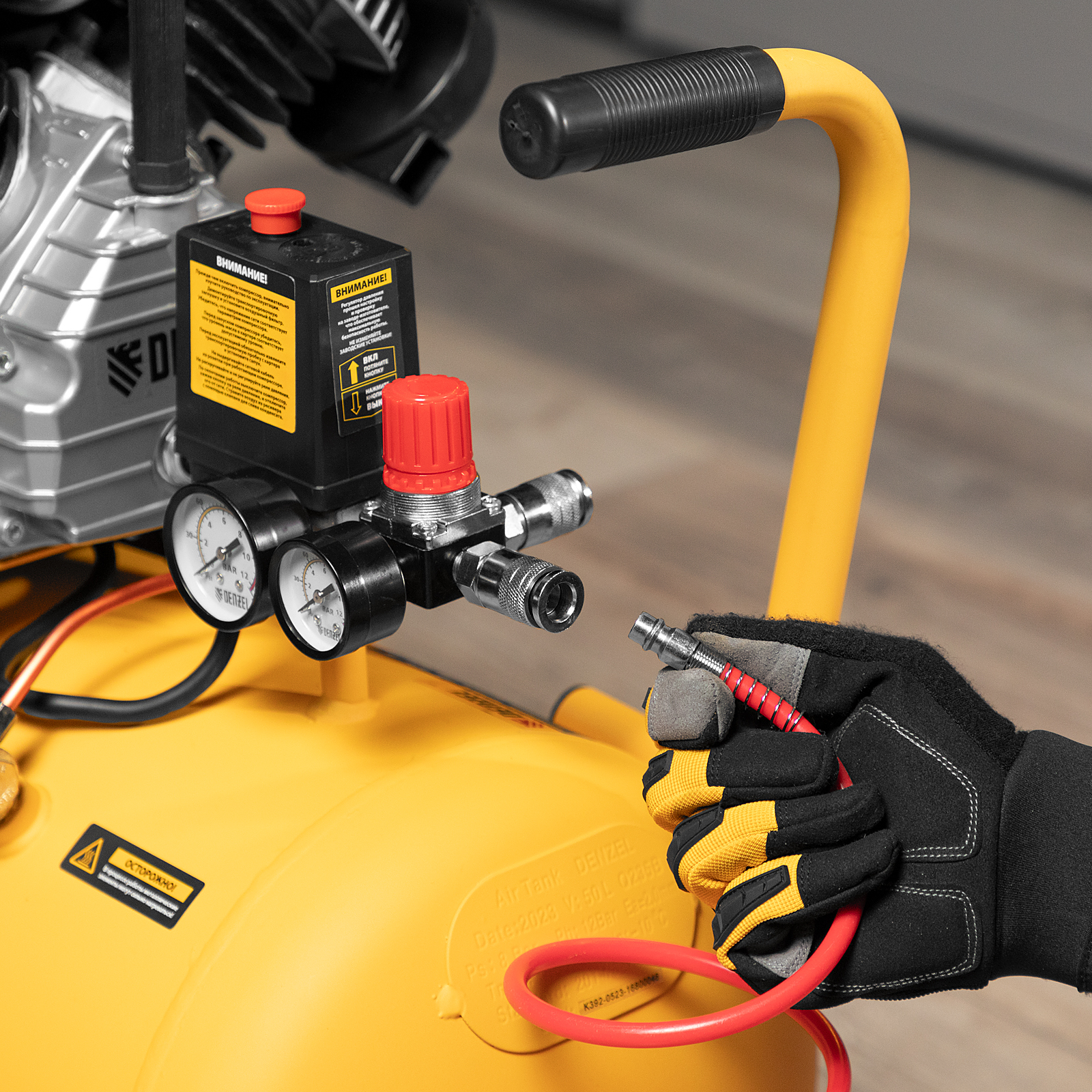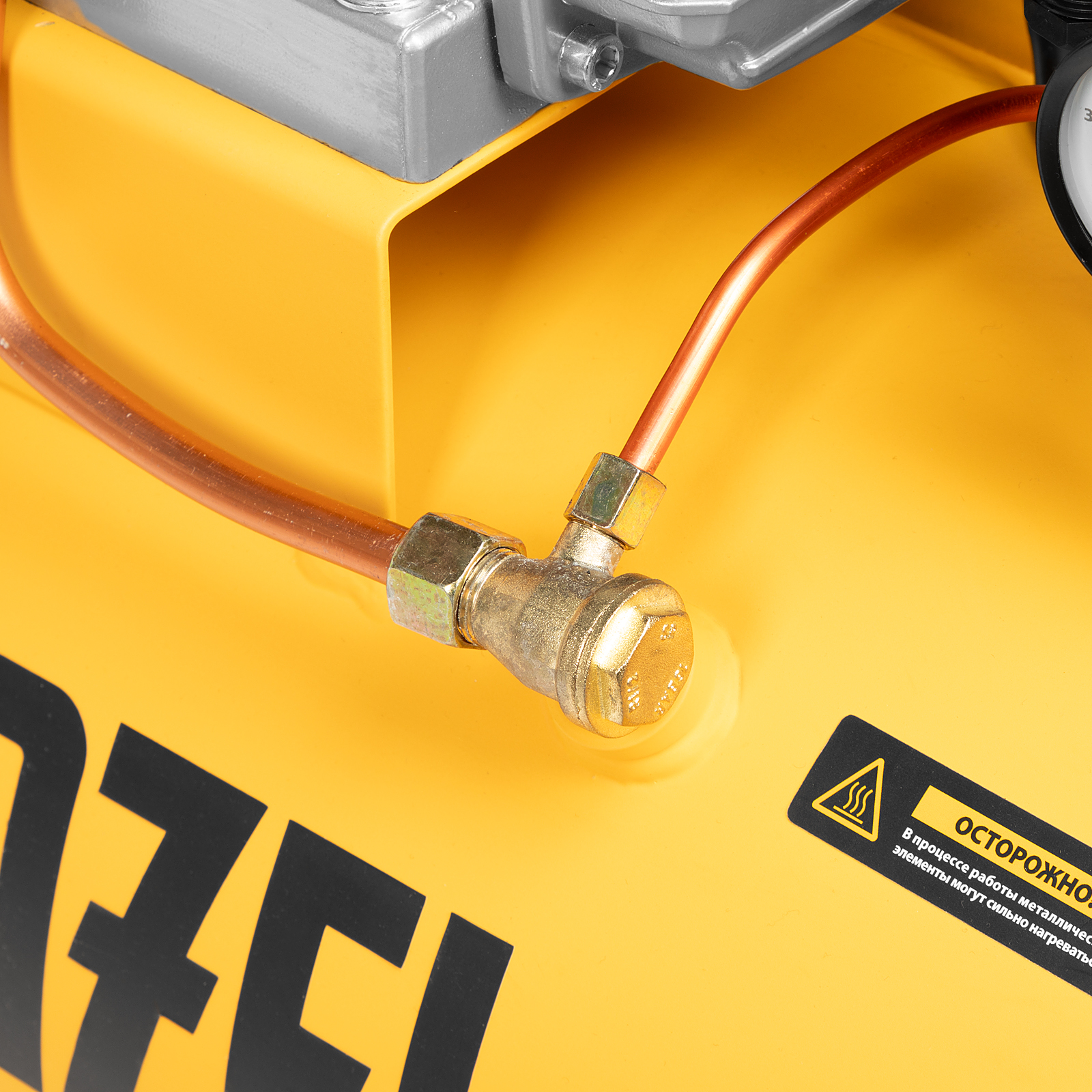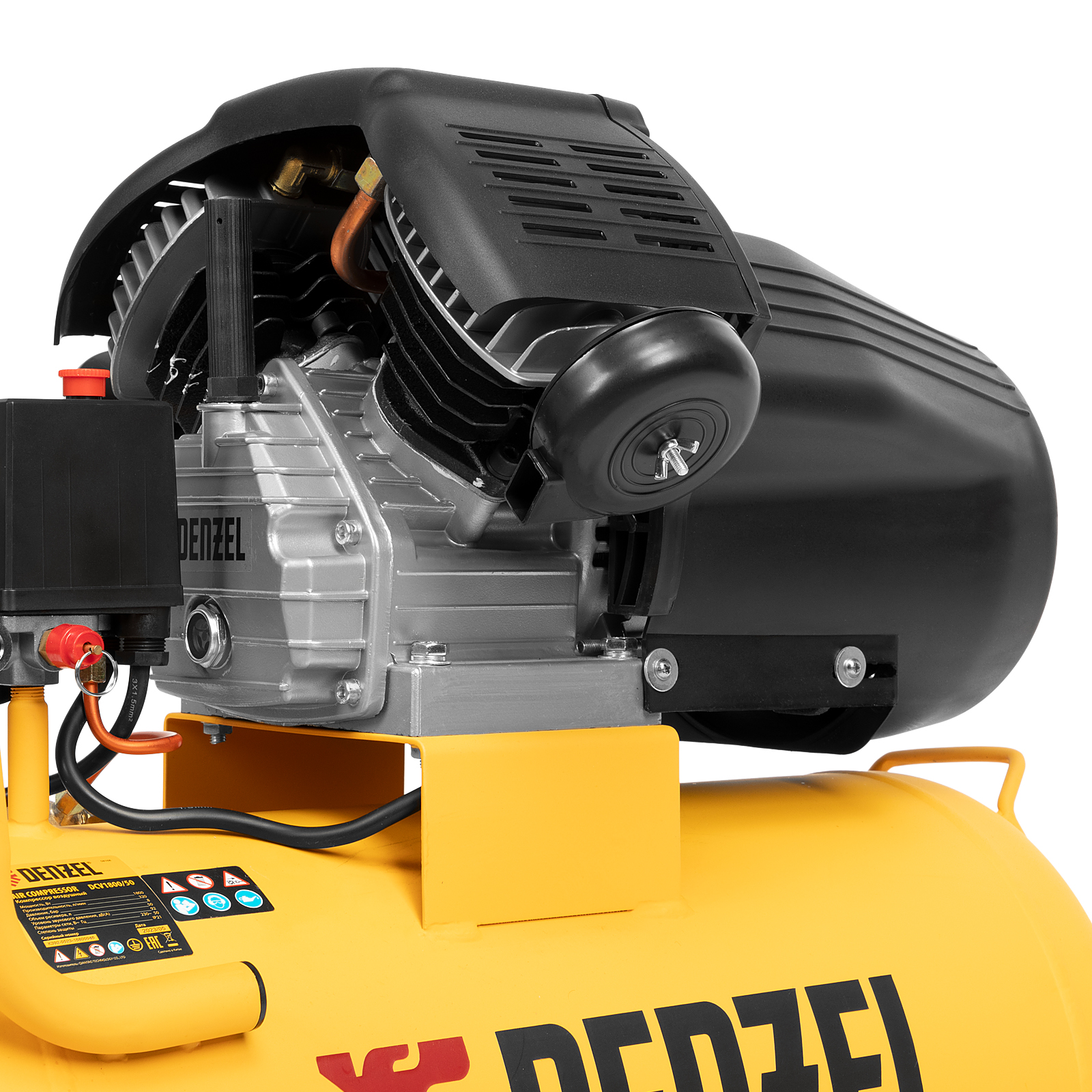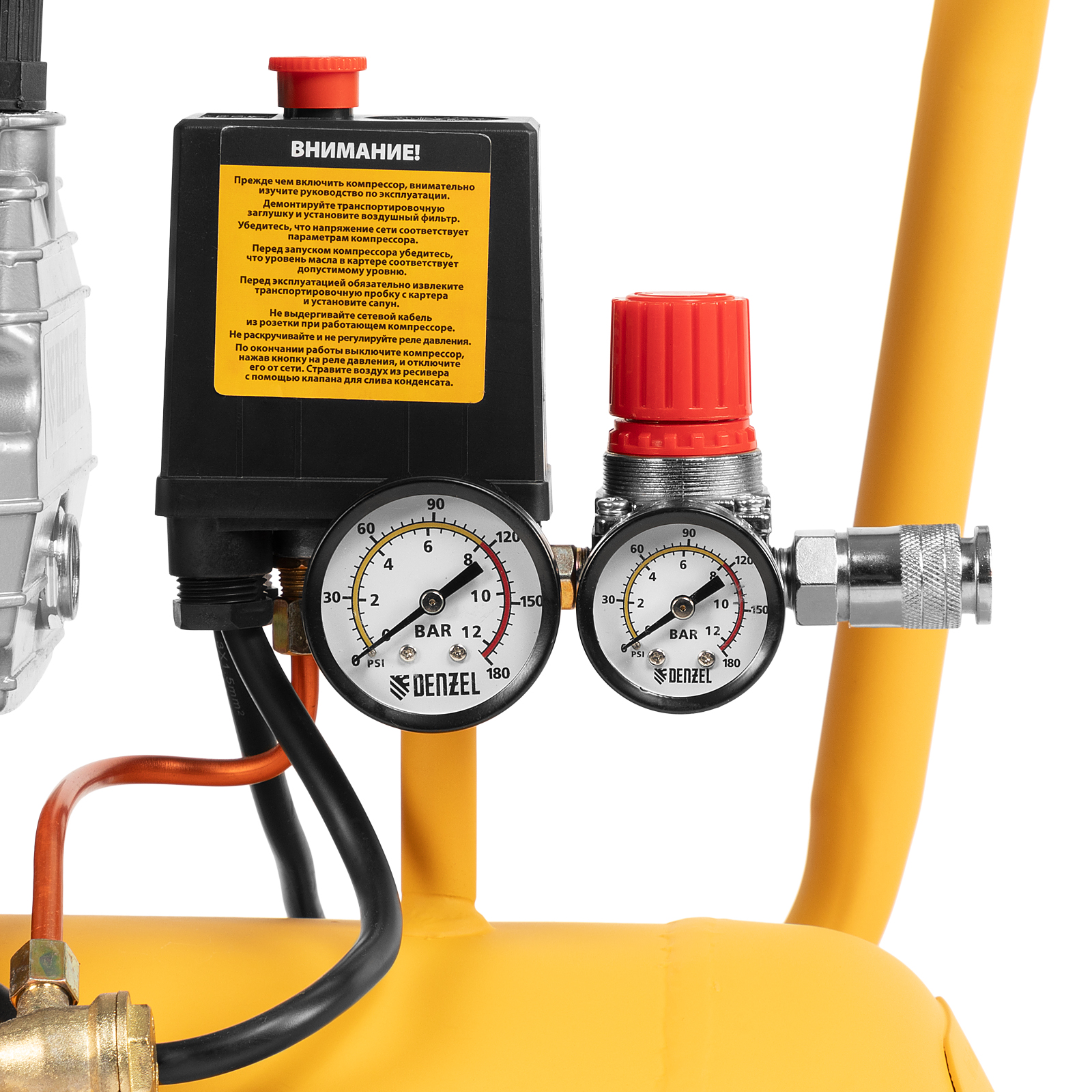 Воздушный компрессор с прямым приводом Denzel DCV1800/50 58168 мощностью 1,8 кВт и производительностью на входе 320 л/мин, с объемом ресивера 50 л, подходит для обеспечения длительной работы пневмогайковерта, пневмозубила, пневмодрели, пневмомолотка или другого пневмоинструмента. Быстроразъемные коннекторы Рапид (Евро) облегчают подключение пневмомагистралей. Эффективная система смазки снижает износ деталей и уменьшает нагрузку на двигатель, что позволяет использовать компрессор в профессиональной сфере. Преимущества Надежность и долговечность — коленвал и цилиндры изготовлены из чугуна, ресивер сварен из стальных листов толщиной 2,5 мм. Безопасная эксплуатация — при перегреве и перегрузке автоматически срабатывает аварийное отключение. Защита от превышения допустимого давления — производитель предусмотрел предохранительный клапан. Автономность — прессостат останавливает двигатель по достижении максимального рабочего давления и запускает его, если давление опускается до минимального. Высокое качество изготовления — детали картера в местах стыка прошли механическую обработку с дополнительной шлифовкой, поэтому риск протечки масла минимален. Улучшенный теплоотвод — оребренные трубки воздуховода обеспечивают эффективное охлаждение поступающего в ресивер воздуха. Тщательная фильтрация воздушного потока — уплотнители на фильтрах исключают попадание пыли в цилиндры. Контроль давления и расхода воздуха — компрессор оснащен регулятором и двумя манометрами. Быстрое удаление конденсата — для откручивания сливной пробки с подпальцевыми упорами не требуется специальный инструмент. Комфортная эксплуатация — амортизирующие опоры снижают уровень вибрации. Удобное перемещение по рабочей площадке — конструкцией предусмотрены колеса и рукоятка. Гарантия 3 года — высокое качество компрессора подтверждено производителем.