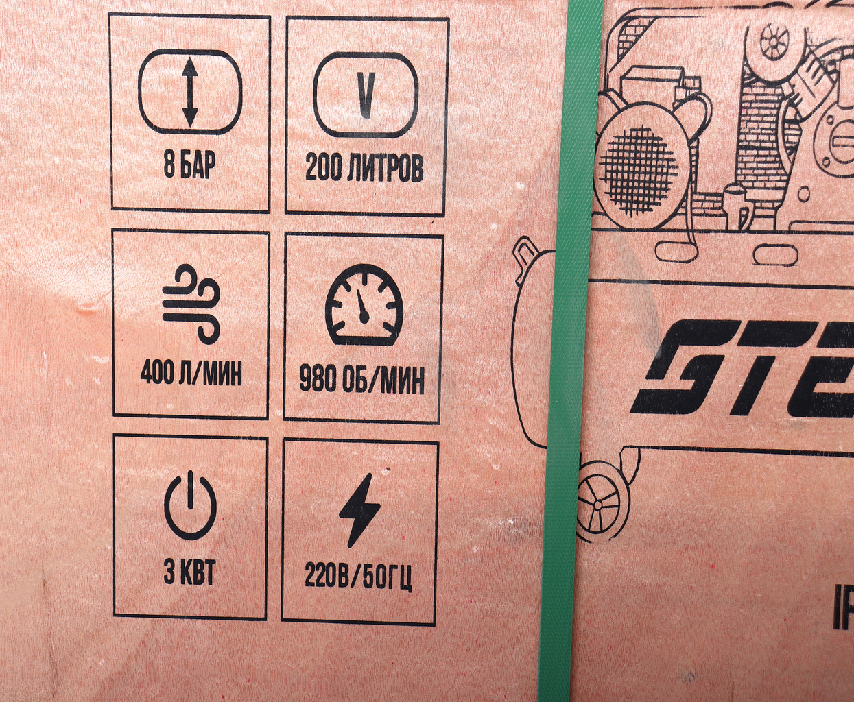 Компрессор поршневой с ременным приводом 220 В, ресивер 200 л, 400 л/мин.