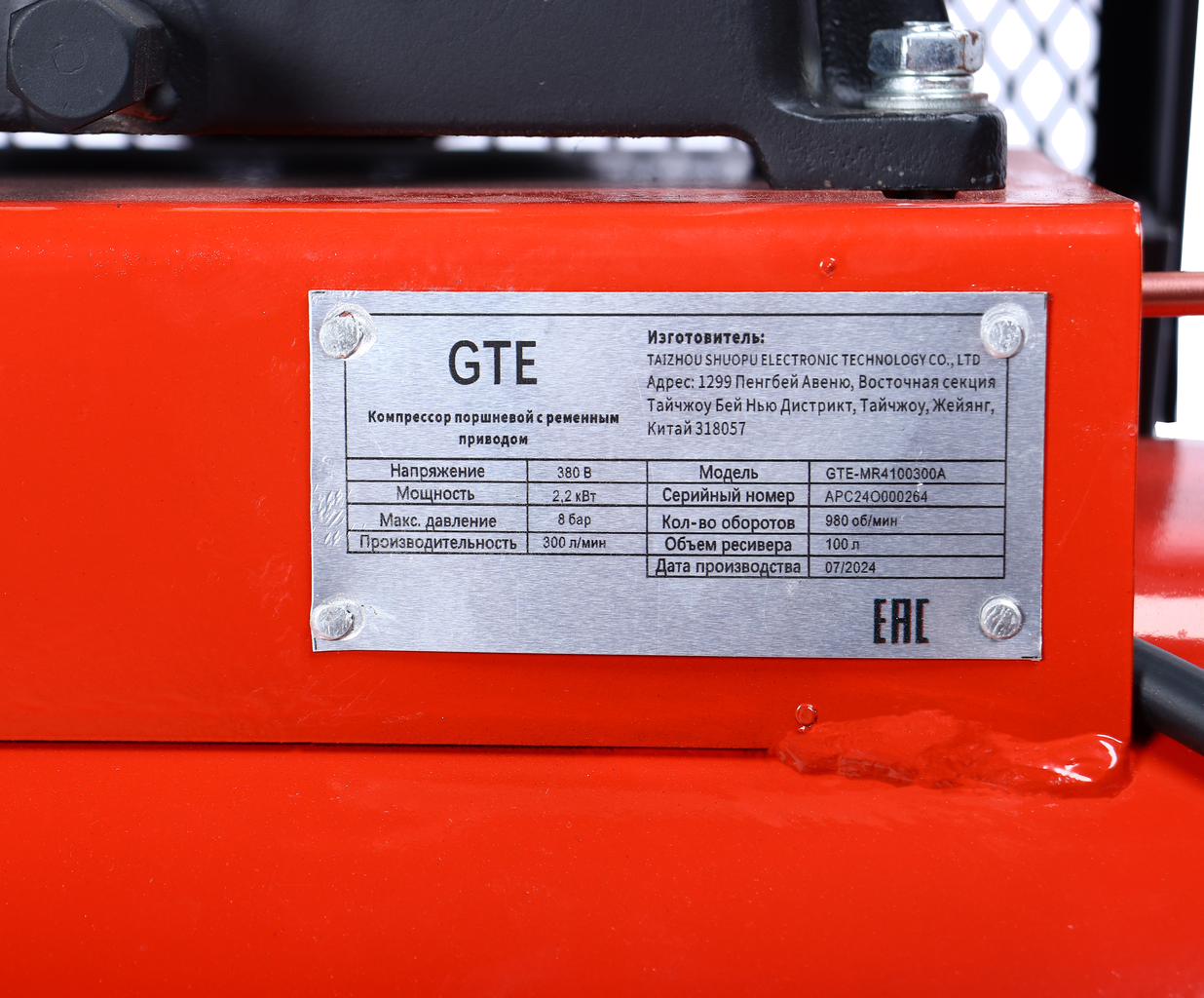 Компрессор поршневой с ременным приводом 380 В, ресивер 100 л, 300 л/мин.