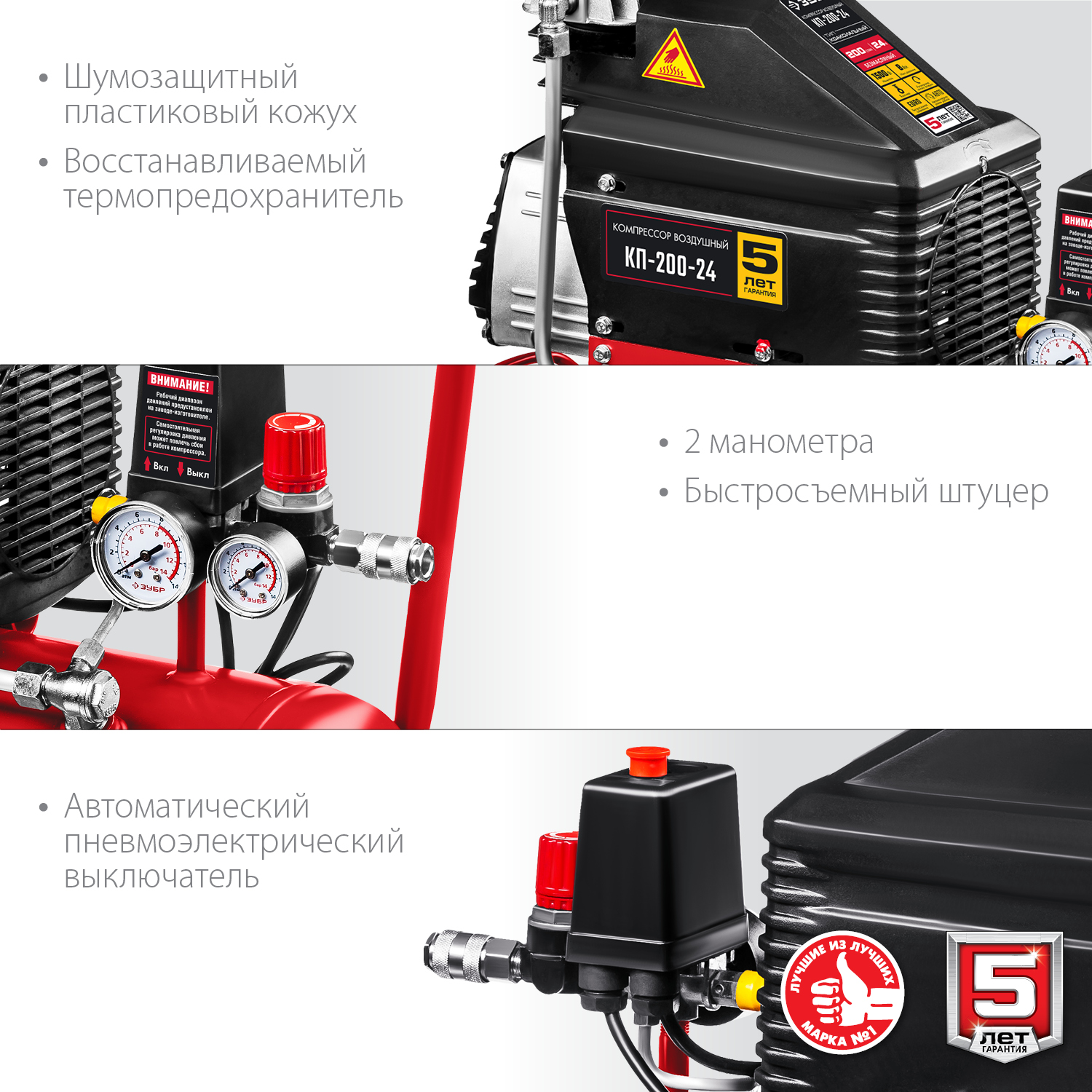 - Выключатель давления обеспечивает автоматическое включение/выключение изделия при расходе сжатого воздуха