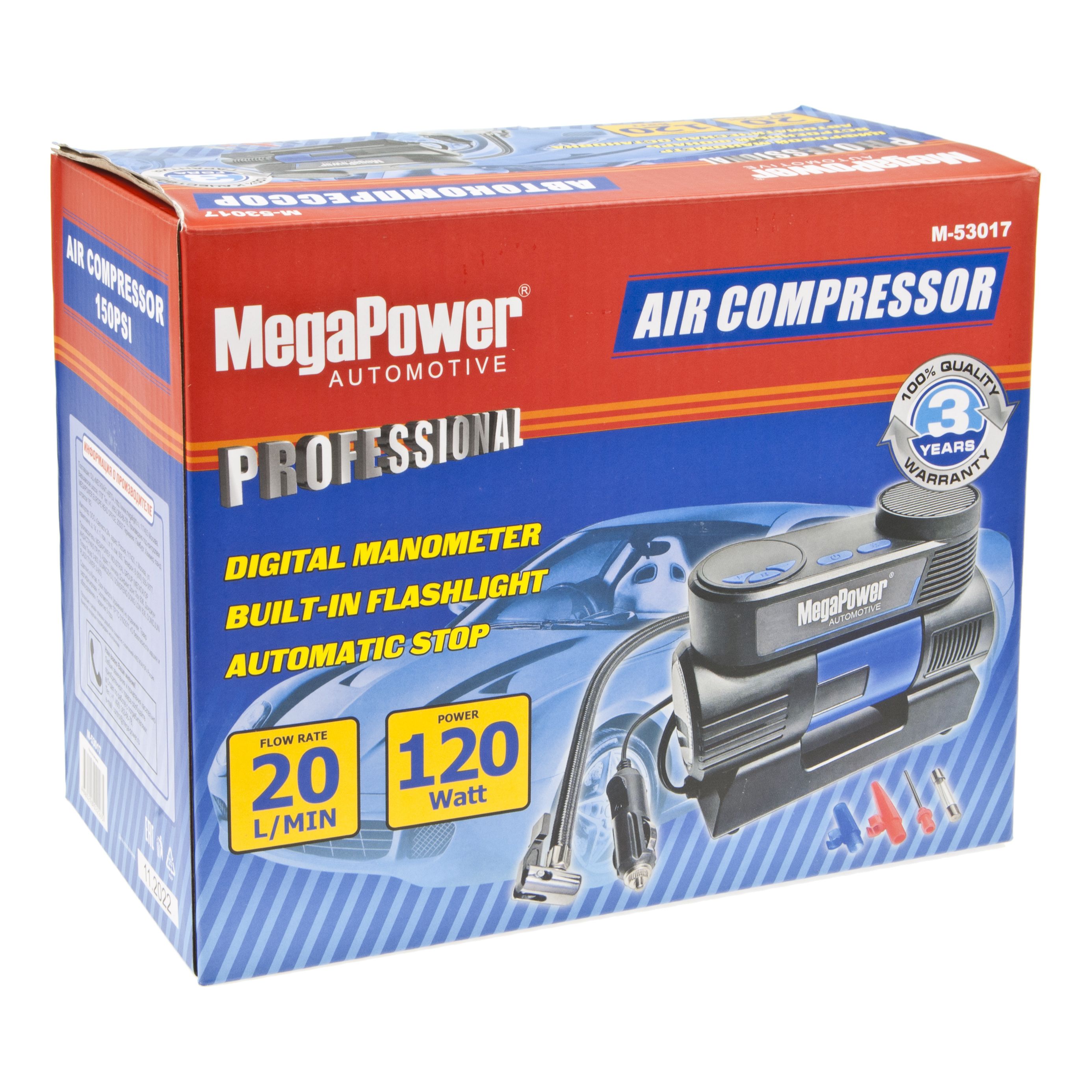 Автомобильный компрессор поршневой 150PSI (20л/мин) цифровой манометр автоматический фиксатор давления 12V M-53017 MEGAPOWER.