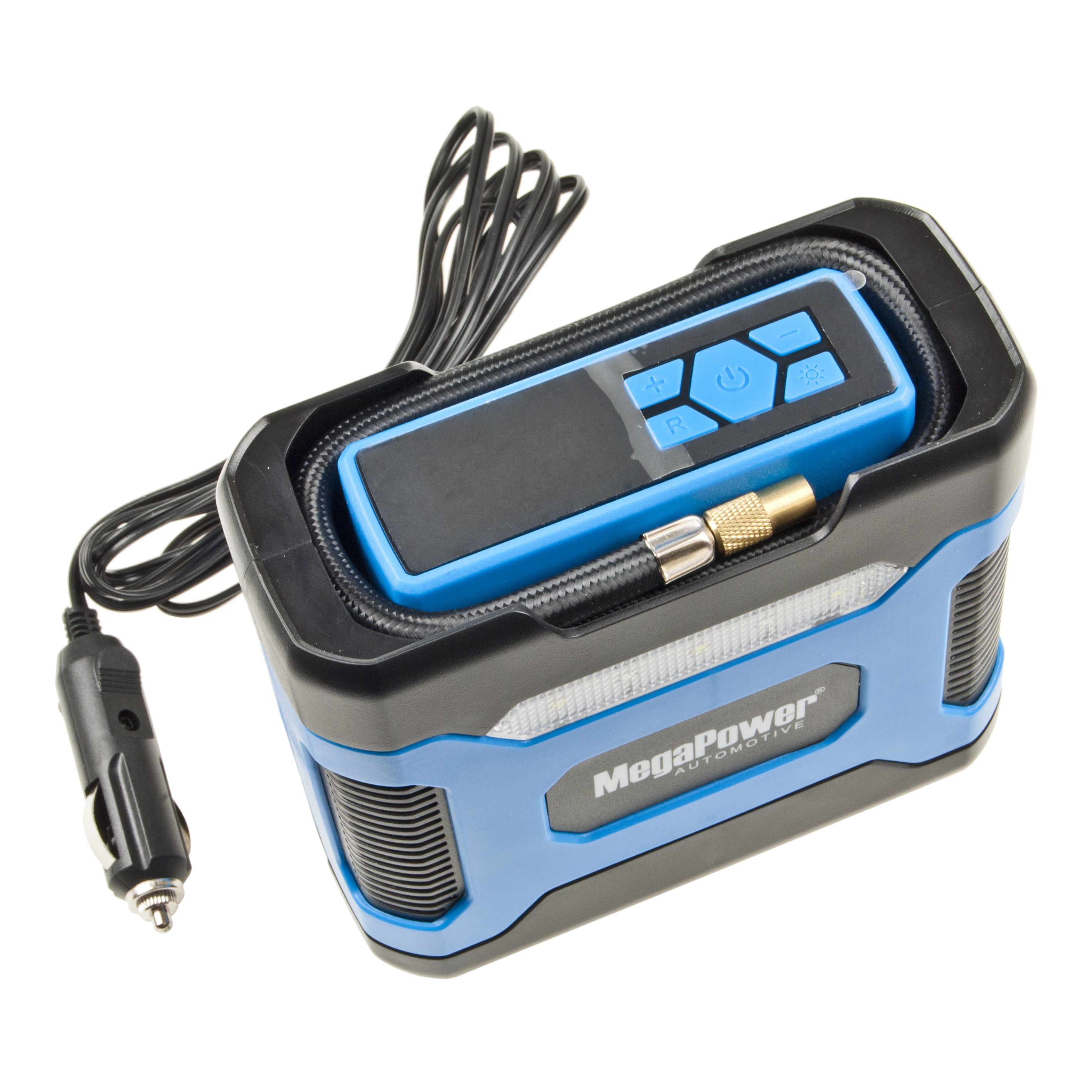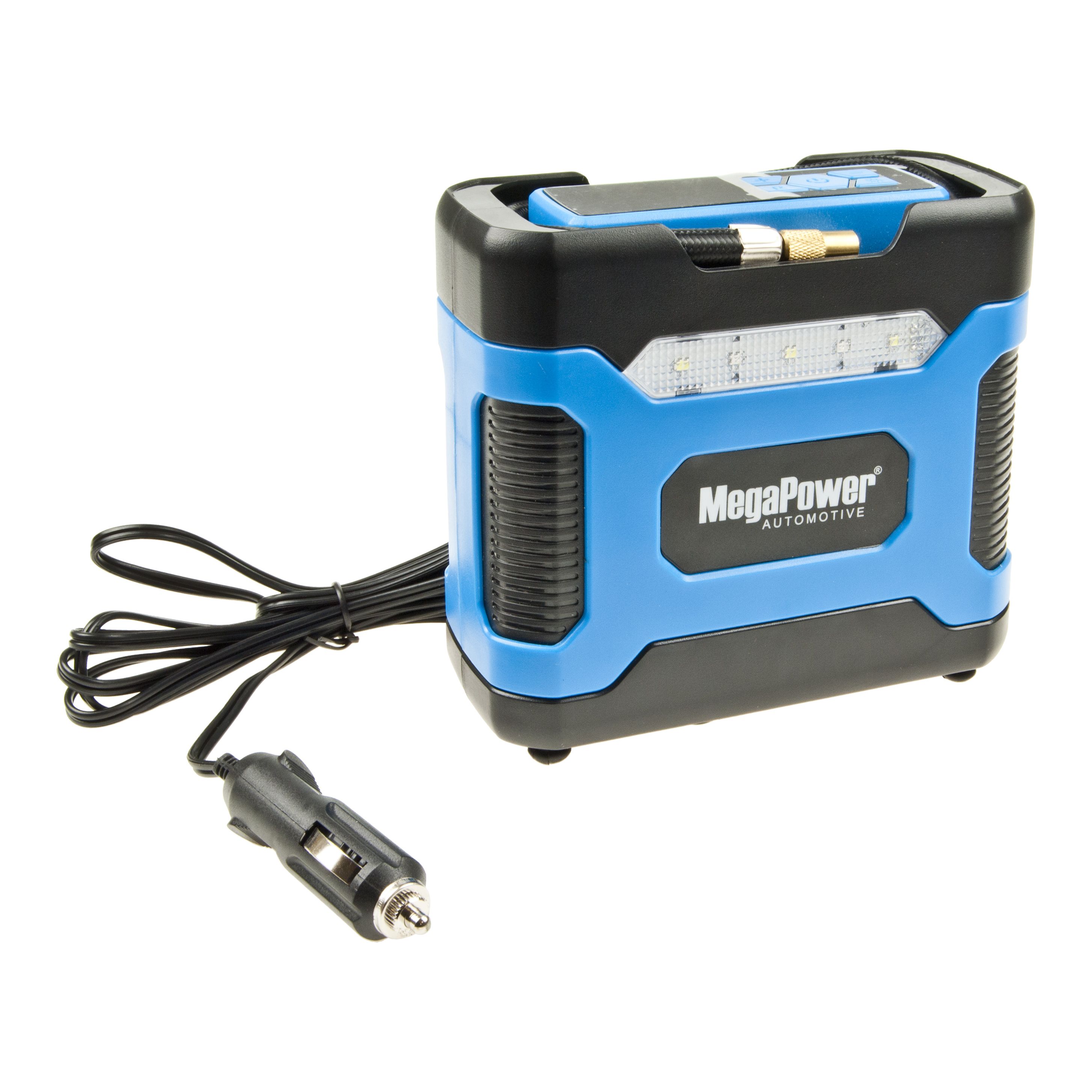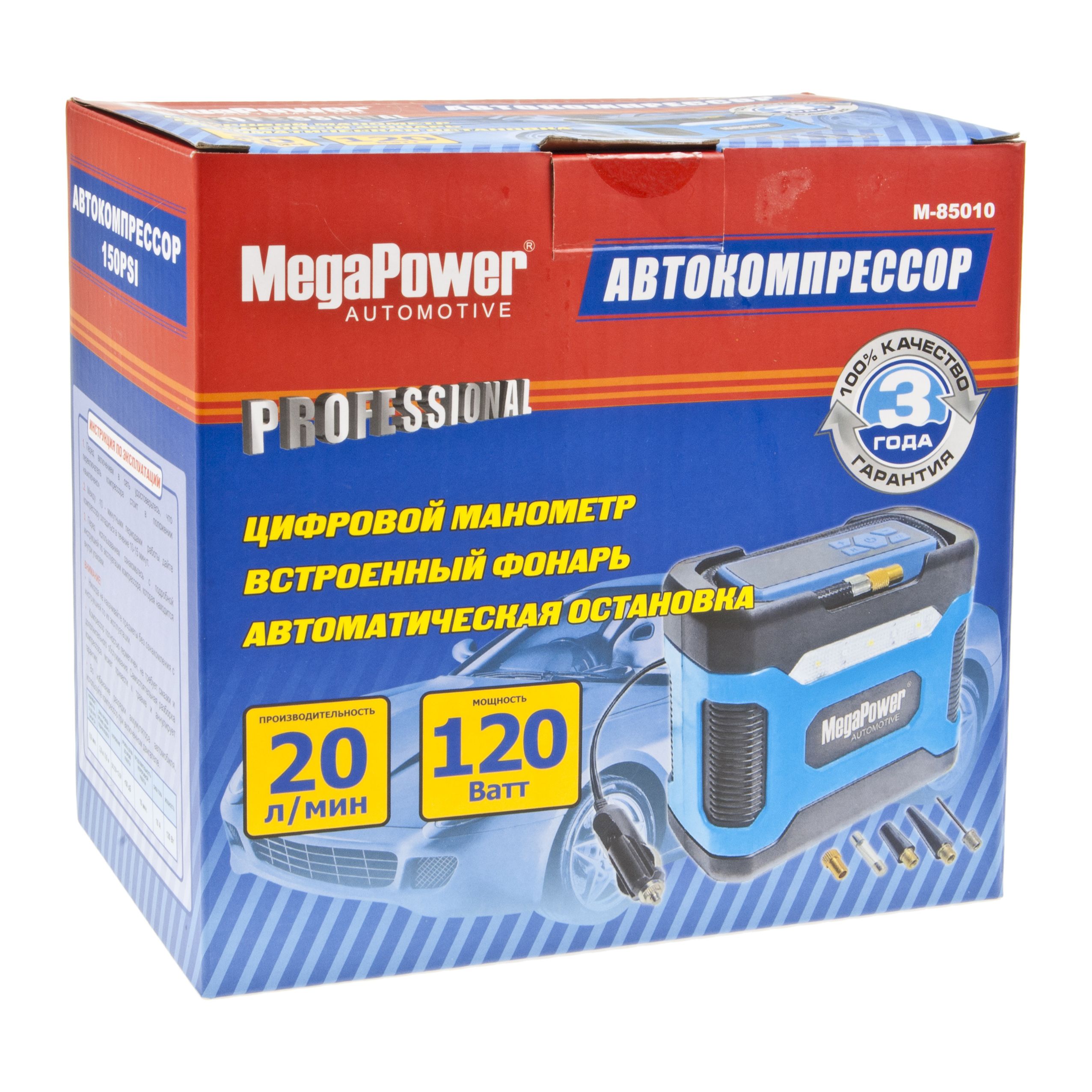 Автомобильный компрессор M-85010 поршневой 150PSI (20л/мин) LED подсветка автоматический фиксатор давления 12V MEGAPOWER.