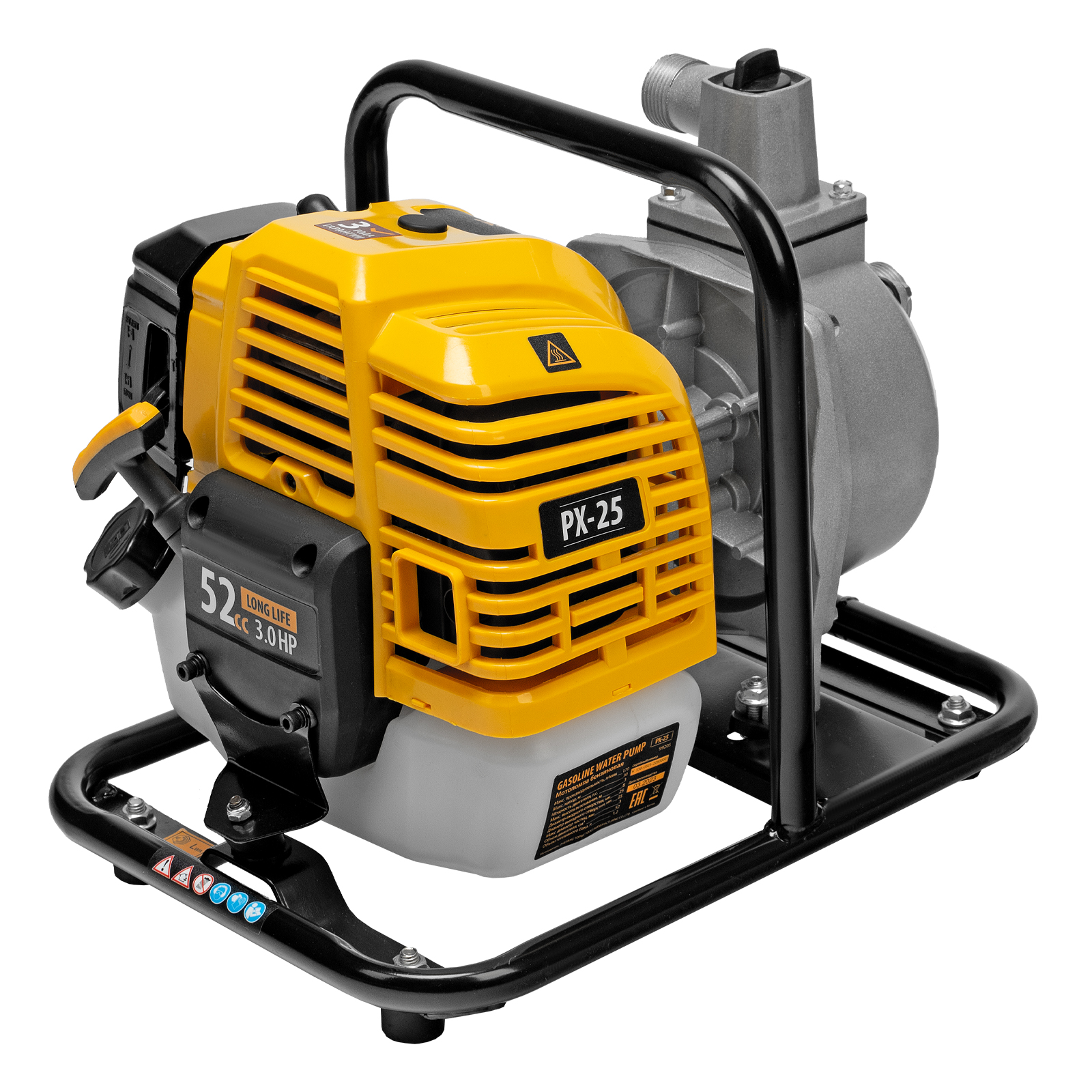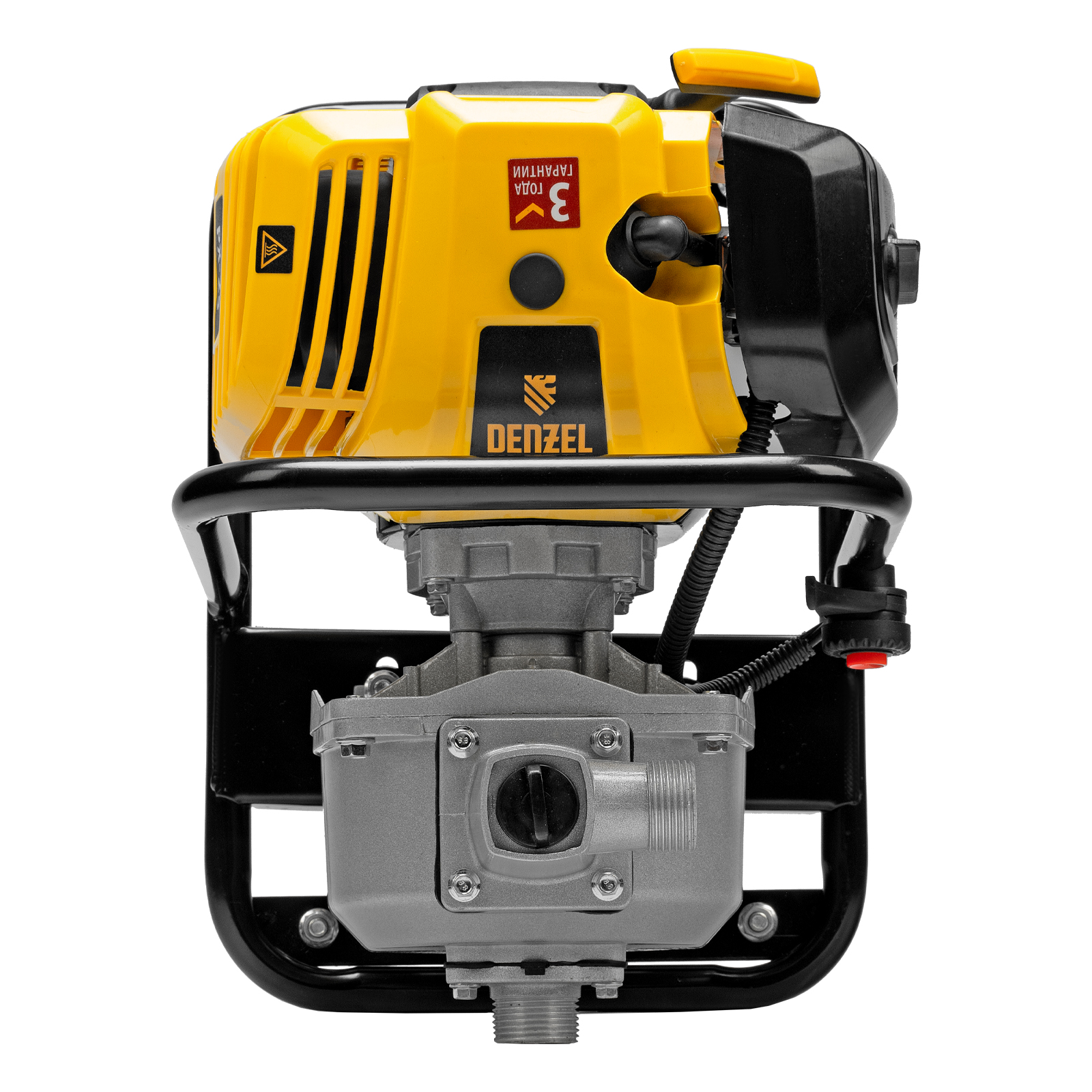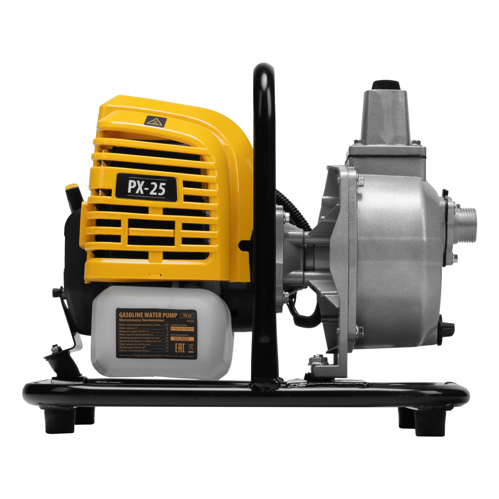 Бензиновая мотопомпа Denzel PX-25 99205 с 2-тактным двигателем мощностью 52 см3 и производительностью 170 л/мин обеспечивает глубину всасывания 8 м и напор 30 м. Предназначена для перекачивания чистой воды, используется для осушения затопленных подвалов и нижних этажей зданий, бассейнов. Подходит также для организации системы орошения на загородном участке.ПреимуществаАвтономность — мотопомпа не зависит от наличия источника электроэнергии.Надежность — мощный и экономичный двигатель рассчитан на длительную эксплуатацию.Эффективная работа — благодаря оптимизированной геометрии насосная часть стабильно обеспечивает требуемый объем и напор подачи воды.Низкий расход топлива — техника способна проработать 1 час без дозаправки.Удобное приготовление топливной смеси — дозатор для смешивания бензина и масла входит в комплект поставки.Легкий старт — праймер (помпа подкачки топлива) облегчает запуск двигателя после длительного простоя.Полная комплектация — мотопомпа поставляется с хомутами и набором инструментов для подключения шлангов.Компактность — мотопомпу размером 440 х 300 х 365 мм и весом 10,05 кг удобно перемещать.Гарантия 3 года — надежность техники подтверждена производителем.