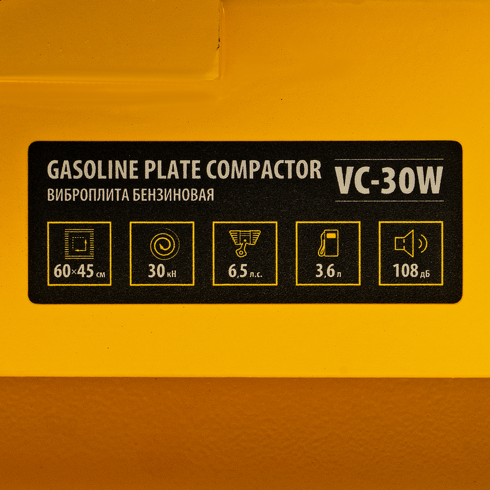 Виброплита бензиновая Denzel VC-30W 97042 с основанием размером 60 х 45 см, оснащена двигателем объемом 196 см3, баком для воды, и воздействует на поверхность с центробежной силой 30 кН. Применяется для уплотнения грунта, асфальта, щебеночного покрытия и других материалов. Ровная рабочая поверхность обеспечивает высокое качество выполняемых работ. Виброплита может использоваться на строительной площадке и при проведении дорожного ремонта.ПреимуществаУдобная работа с горячим асфальтом и липкими смесями — на виброплите установлен бак для воды, орошение уплотняемого покрытия предотвращает его налипание на основание плиты.Надежность — мощный и экономичный двигатель LONCIN обеспечивает стабильную работу в течение длительного времени.Удобное управление — рычаг газа расположен на верхней части рабочей рукоятки.Экономичность — полностью заправленного бака хватит на 2 часа работы.Безопасная эксплуатация — приводной ремень закрыт защитным кожухом.Защита от загрязнения — воздушный и топливный фильтры предотвращают попадание посторонних частиц в цилиндр двигателя и бак.Комфортное перемещение на новый участок — производитель предусмотрел подъемную скобу и возможность установки транспортировочных колес (арт. 98024, в комплект поставки не входят).Удобное хранение — благодаря складной рукоятке виброплита не занимает много места.Гарантия 3 года — надежность техники подтверждена производителем.