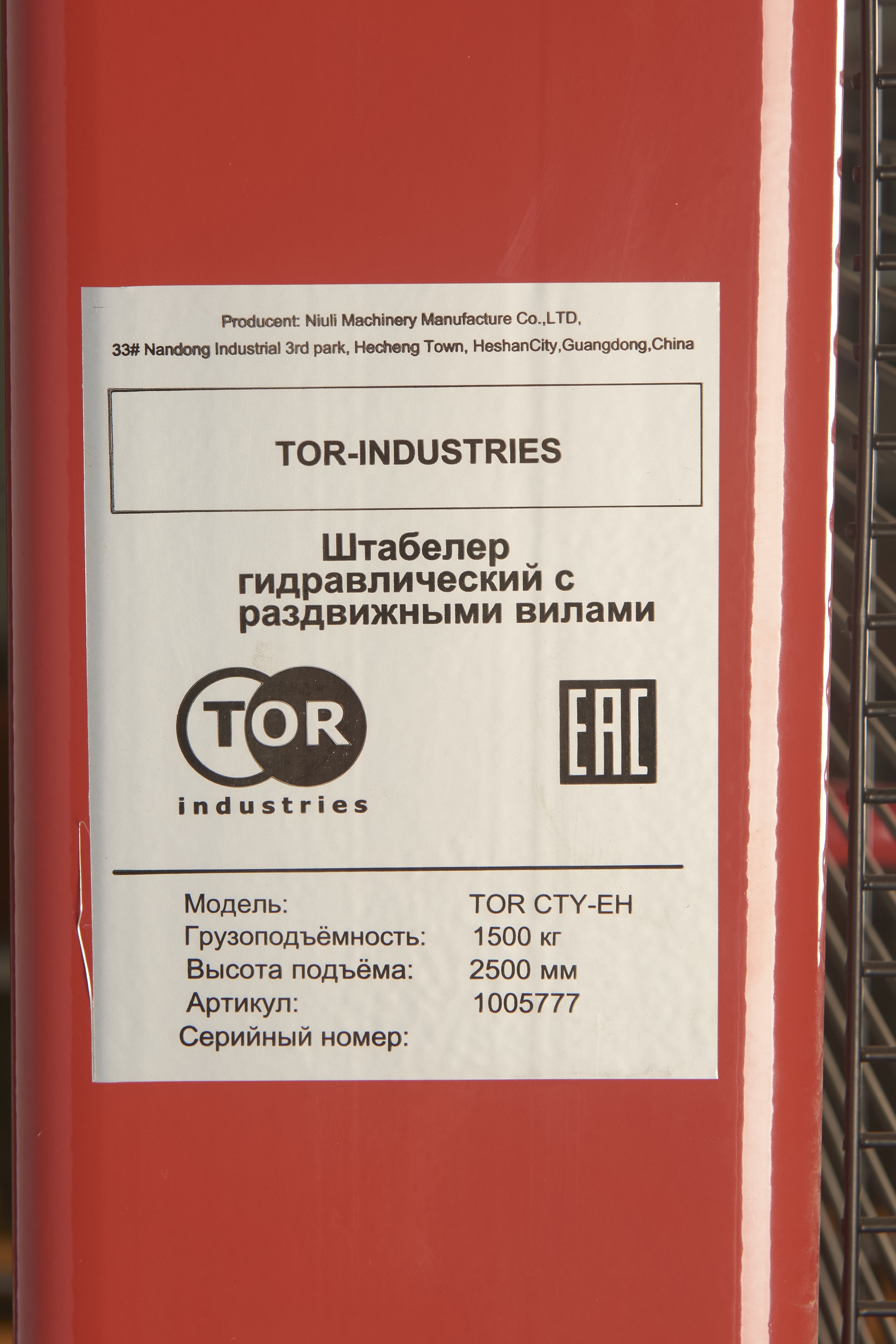 Ручной штабелер TOR CTY-EH — универсальная и надежная модель с раздвижными вилами для работы с разными видами паллет.