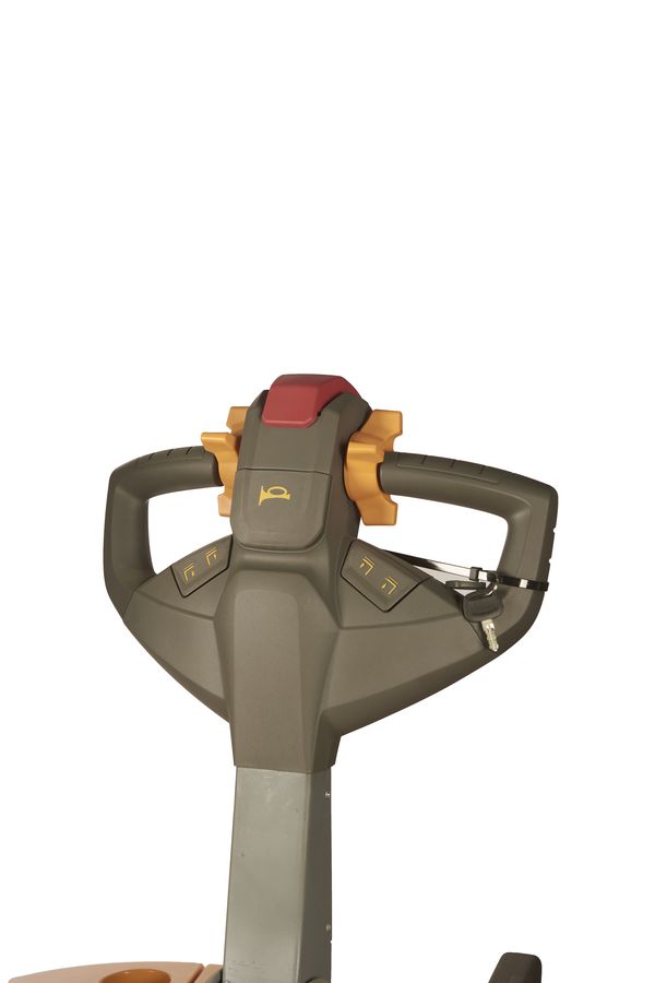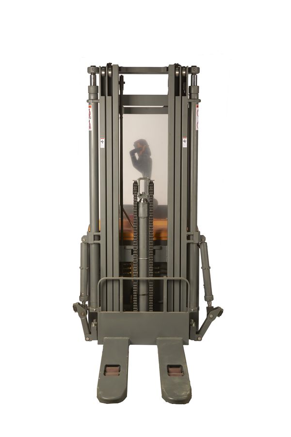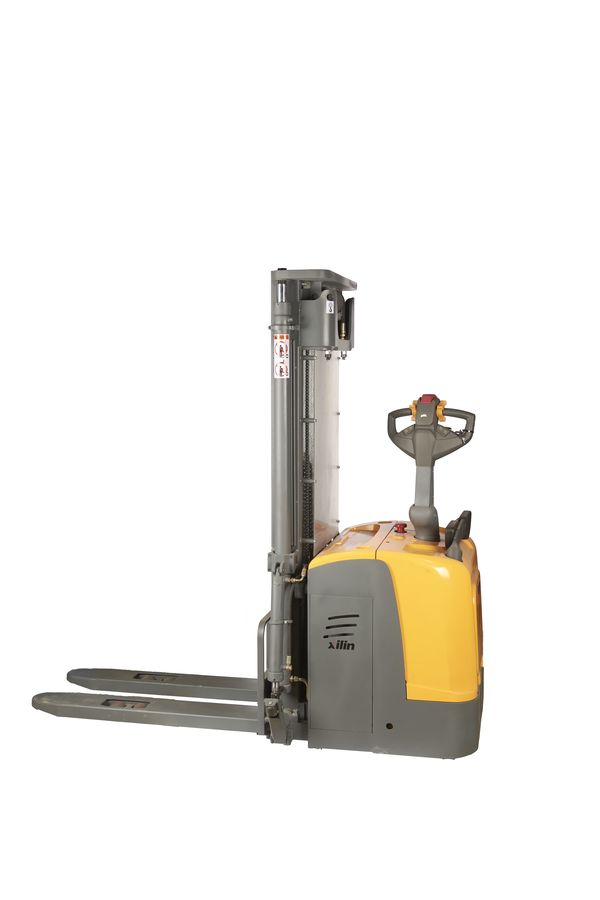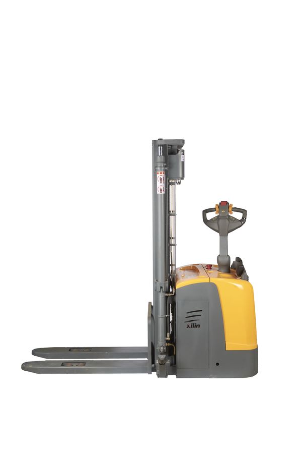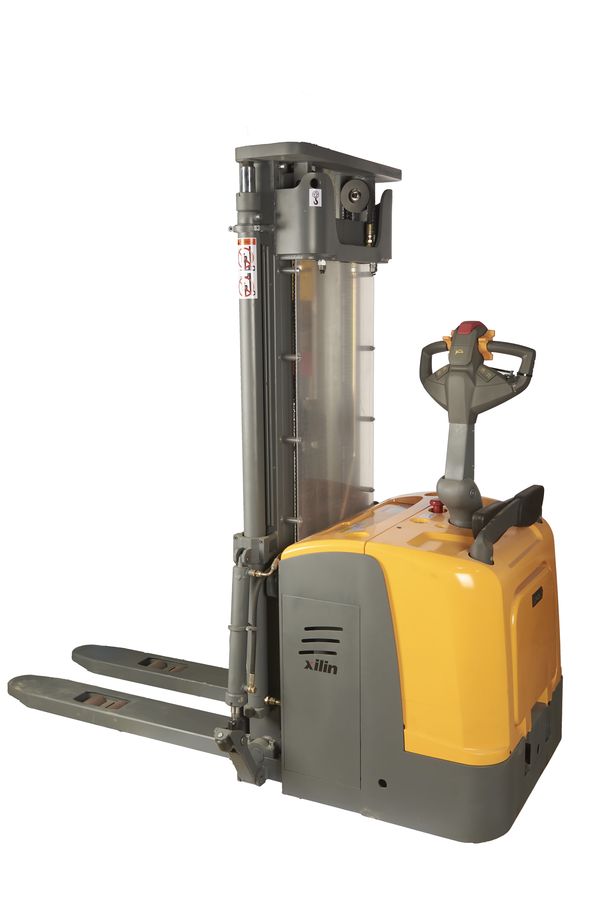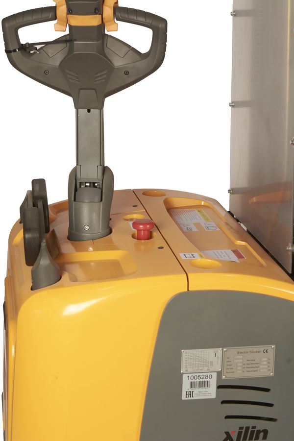 Данный штабелёр работает от электричества не только на подъём, но и на передвижение в горизонтальной плоскости. Обладает лёгким и удобным управлением, высокой манёвренностью. Оснащён электромагнитным тормозом. Для обеспечения устойчивости штабелера при подъеме груза на большую высоту данная модель оснащена специальными дополнительными выдвижными упорами, которые могут быть убраны при транспортировке груза в нижнем положении вил.