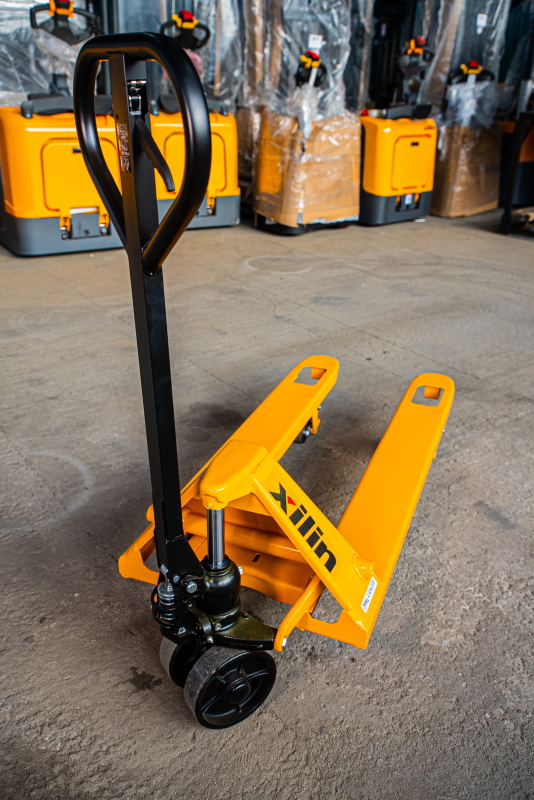 XILIN DF-III - надежный помощник для работы на складе со средним товарооборотом. Высокое качество исполнения, усиленная стальная рама, сдвоенные подвилочные ролики и рулевое колесо, сварной гидроцилиндр с хромированным штоком и покрытие краской устойчивой краской сочетаются в этой модели с доступной ценой.