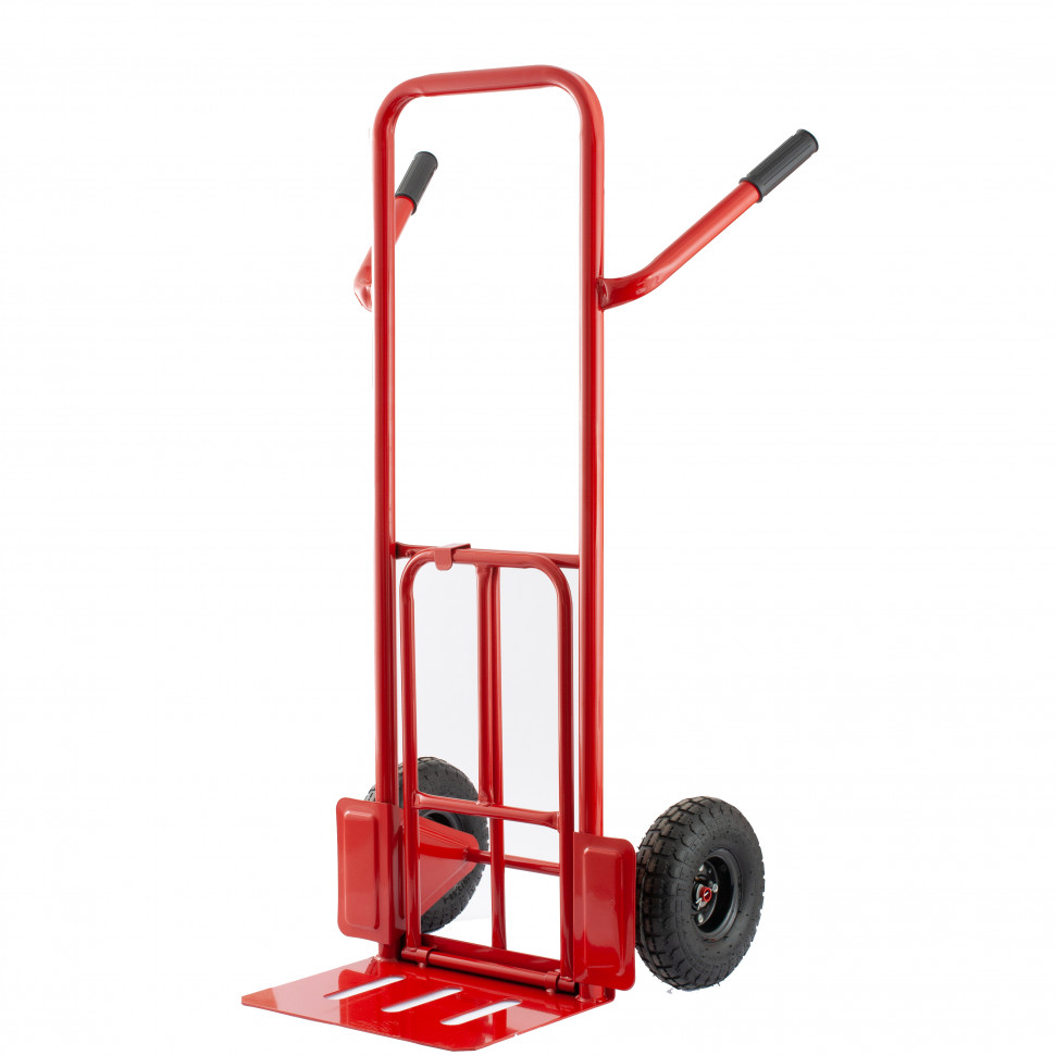 Ручная 2-колесная тележка Сибртех TTP2-01.00.000 68944 грузоподъемностью 190 кг, с пневматическими колесами диаметром 260 мм и платформой размером 580 х 290 мм, используется для перемещения крупных грузов массой до 190 кг. Стальная рама с толщиной стенок 1,2 мм обеспечивает прочность конструкции. Тележка пригодится для работы на складе или на производстве.ПреимуществаДополнительные возможности — откидная платформа позволяет разместить на тележке груз с увеличенными габаритами.Долговечность — стальная рама покрыта порошковой эмалью для защиты от коррозии.Эргономичность — изогнутые назад ручки обеспечивают удобство перемещения тележки, а также могут служить упорами при горизонтальной погрузке.Ремонтопригодность — колеса можно заменить при необходимости, совместимый артикул 68970.Удобная транспортировка груза — пневматические колеса с камерами, резиновыми шинами и 2 шарикоподшипниками в каждом гасят вибрации и обеспечивают плавность хода.