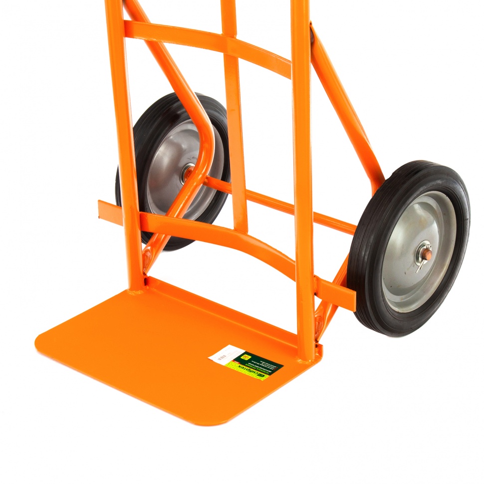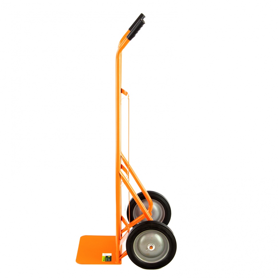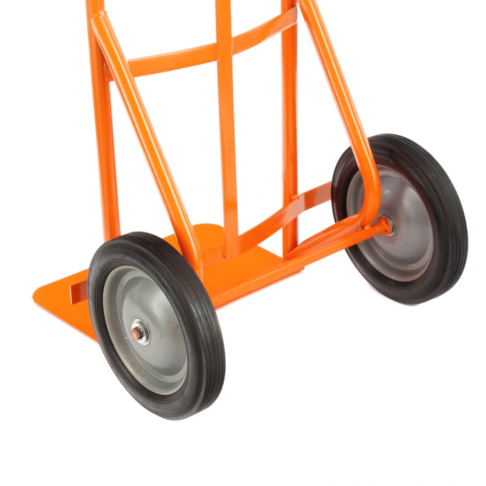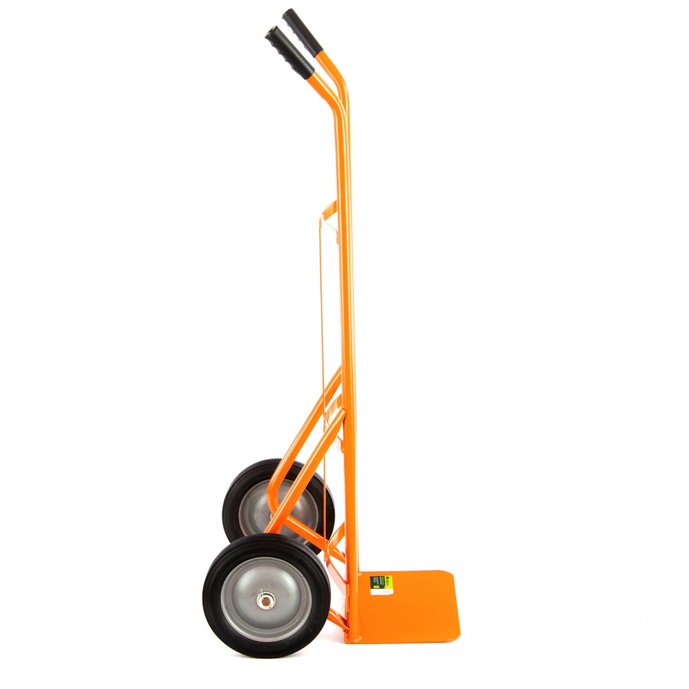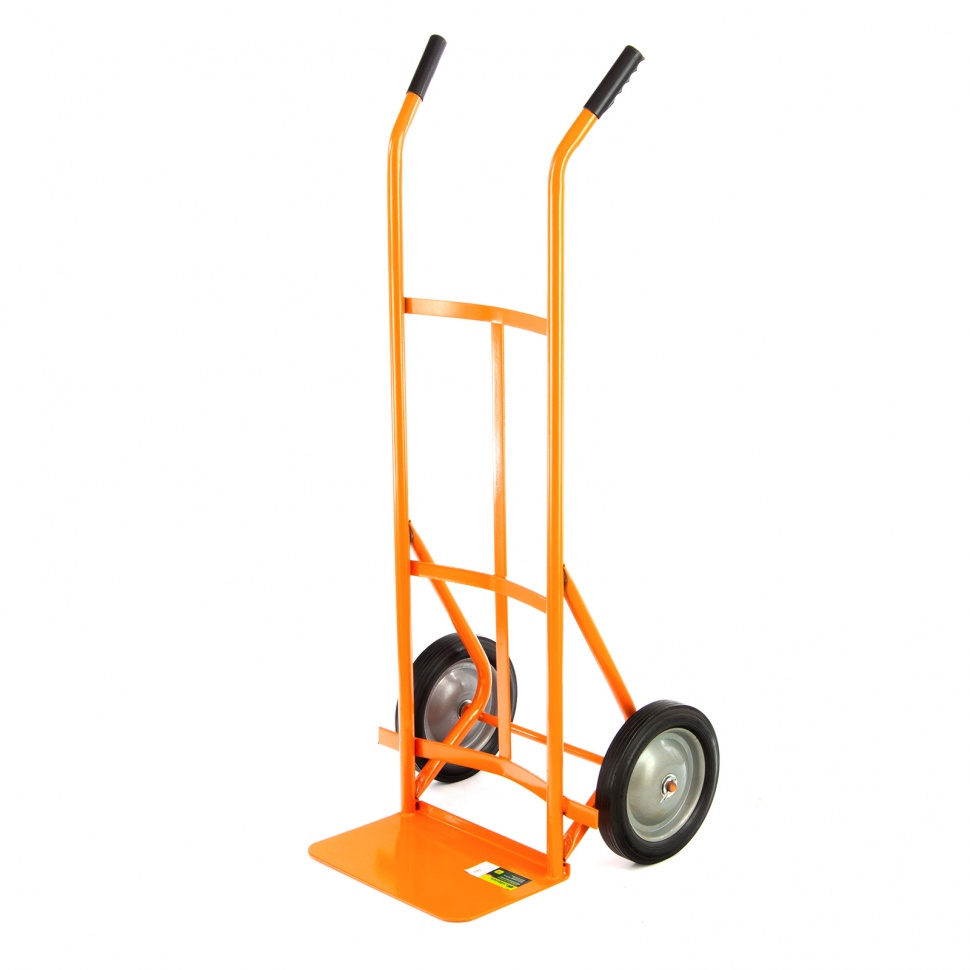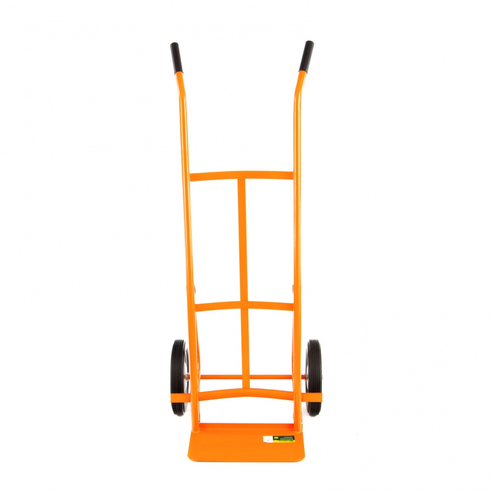 Ручная 2-колесная тележка Сибртех 68949 грузоподъемностью 130 кг, с платформой размером 355 х 230 мм, применяется для перемещения грузов массой до 130 кг. Толщина стали, из которой изготовлена рама, составляет 1,3 мм, что придает прочность конструкции. Тележка установлена на 2 колеса с литыми шинами, устойчивых к нагрузкам и механическим повреждениям. Приспособление используется на складах и производственных предприятиях.ПреимуществаЗащита от коррозии — рама покрыта порошковой эмалью.Возможность горизонтальной погрузки — изогнутые рукоятки могут служить опорами.Свободное перемещение нагруженной тележки — в каждом колесе имеется 2 шарикоподшипника, которые облегчают вращение.
