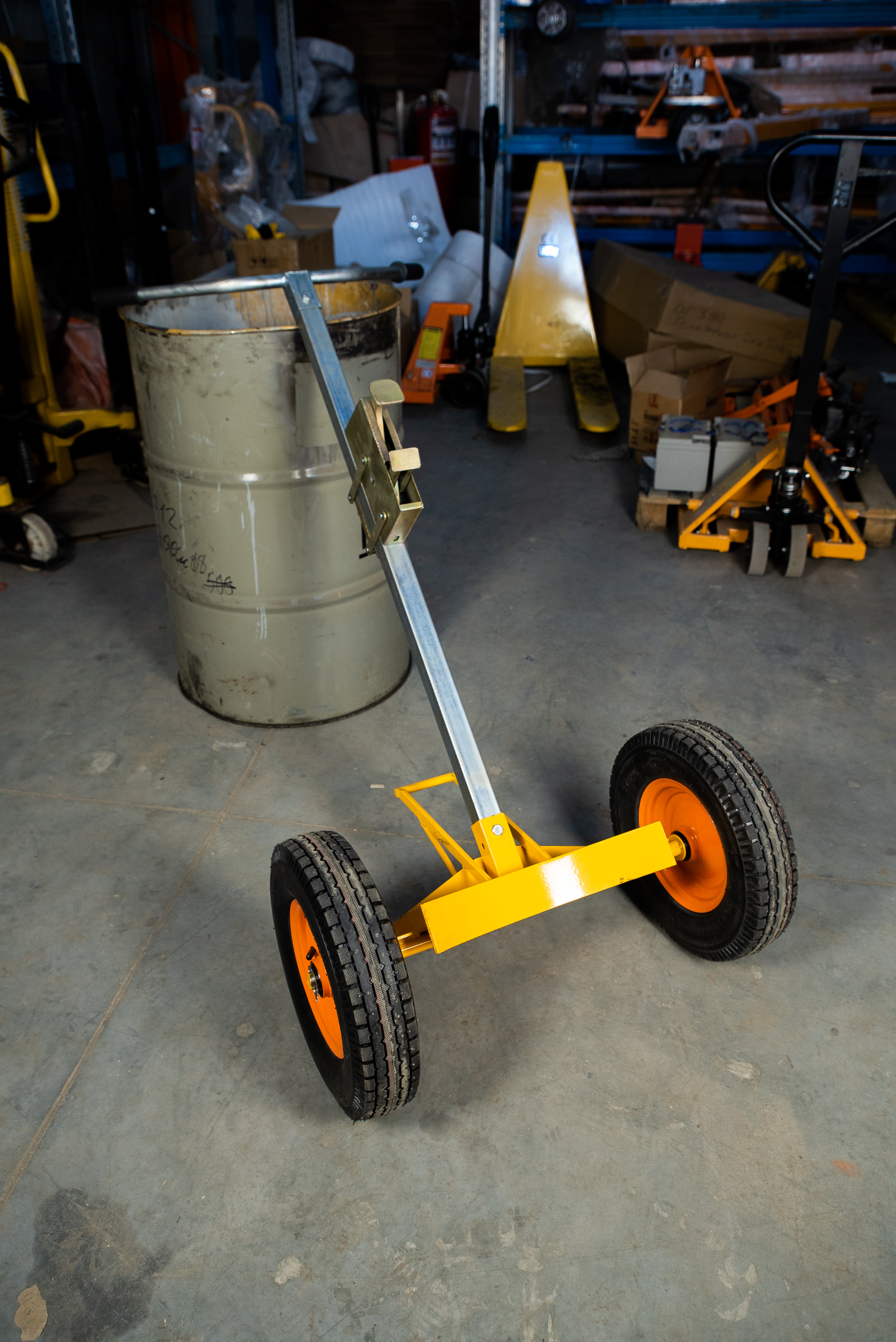 Тележка TORDE450 состоит из следующих элементов: металлическая прочная рама с ложем для бочки и упором, ручка с автоматическим фиксатором бочки, передвижной автоматический фиксатор кромки (под разную высоту бочки), двух пневматических колес. Грузоподъемность тележки составляет 450 кг – это позволяет перемещать все возможные виды грузов, тарированныхв бочки.Тележка для бочек TORDE450 – отлично подходит для перевозки пластиковых и металлических бочек. Простая конструкция тележки и автоматический зацеп позволяет очень быстро погружать бочку на тележку. Принцип действия захвата очень прост. Заводим нижнюю часть зацепа за кромку бочки, тянем тележку на себя создавая усилие на зацеп, верхняя часть которого автоматически прижимает верхнюю кромку бочки, полностью поднимаю бочку за кромку. Тележка TORDE450 состоит из следующих элементов: металлическая прочная рама с ложем для бочки и упором, ручка с автоматическим фиксатором бочки, передвижной автоматический фиксатор кромки (под разную высоту бочки), двух пневматических колес. Грузоподъемность тележки составляет 450 кг – это позволяет перемещать все возможные виды грузов, тарированныхв бочки. Приобретайте тележки в интернет-магазине eme54.ru, получайте гарантию от производителя. Все необходимые запасные части и колеса в наличии.