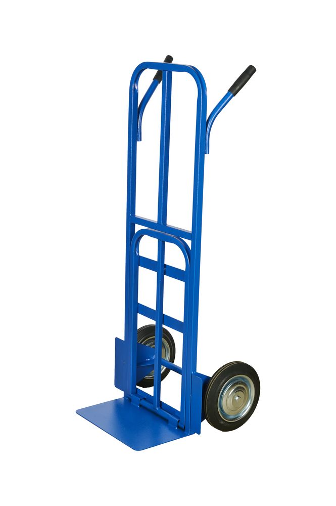 Тележка TOR КГ-250П с откидной полкой подходит для перевозки особо крупных грузов общим весом до 250кг. Тележка поставляется с комплектом литых резиновых колес ⌀ 250мм.