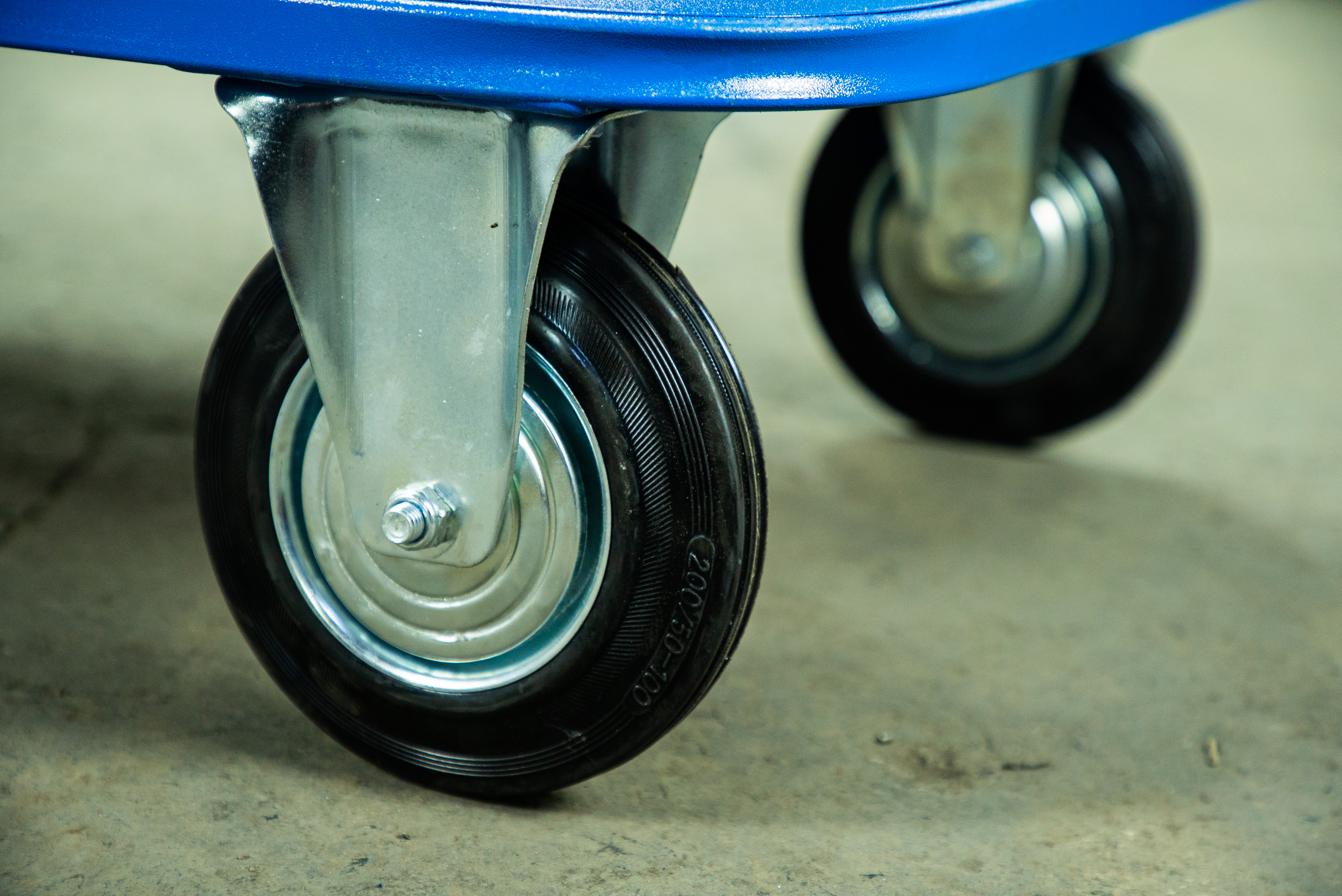 - 2 поворотных и 2 неповоротных колеса ⌀ 200мм в комплекте