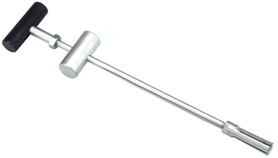 Инструмент проходит через шток толкателя, захватывает толкатель клапана и вытаскивает его с помощью обратного молотка.