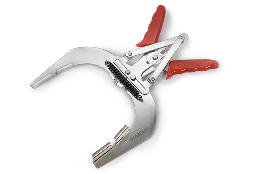 Инструмент имеет специальную форму губок, обеспечивающую надежное удержание кольца в процессе работы. Применение данного приспособления полностью исключает поломку компрессинного кольца в процессе монтажа.