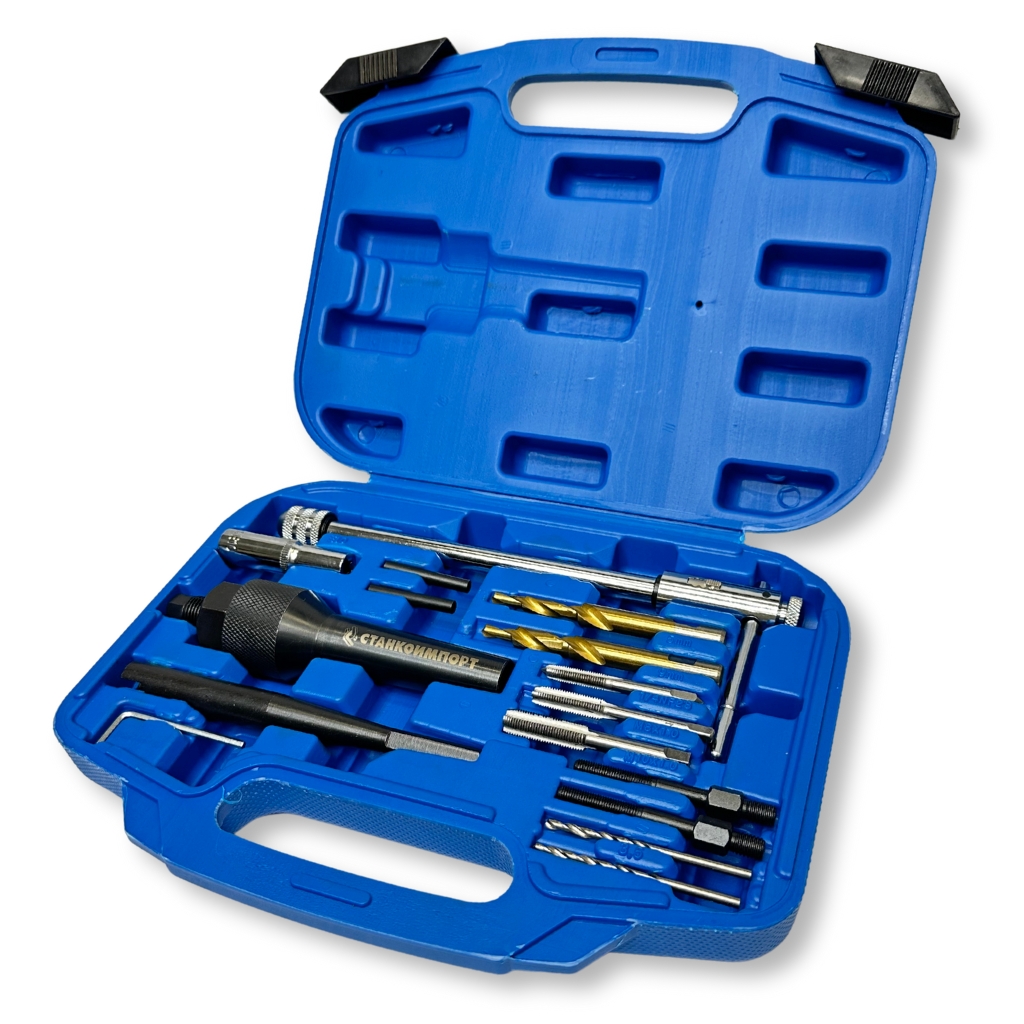 Набор приспособлений предназначен для извлечения сломанных свечей накаливания механическим путём без демонтажа головки блока цилиндров.