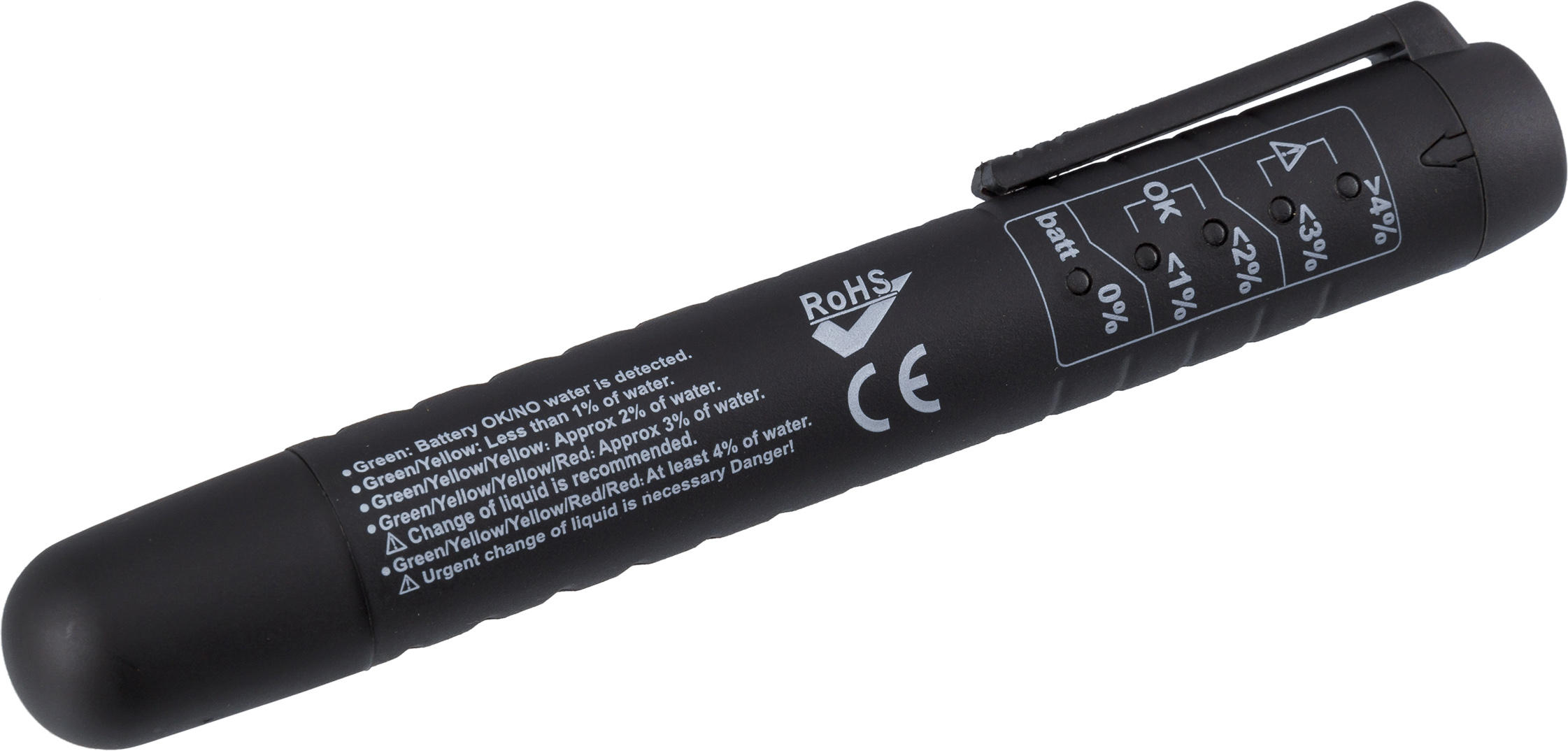 Тестер позволяет оценить качество тормозной жидкости путём измерения содержания в ней воды.