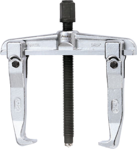 Универсальный съемник с двумя захватами «американского типа» является одним из наиболее простых и в то же время, удобных в применении типов съемников. Захваты свободно перемещаются по направляющим траверсы, сохраняя одинаковую площадь пятна контакта лапок с демонтируемой деталью. При нагрузке захваты заклиниваются на направляющих, что предотвращает соскальзывание лапки с демонтируемой детали. Съемник также можно использовать для внутреннего захвата детали. Захваты изготовлены из хромованадиевой стали путем ковки. Ходовой винт изготовлен из хромомолибденовой стали.