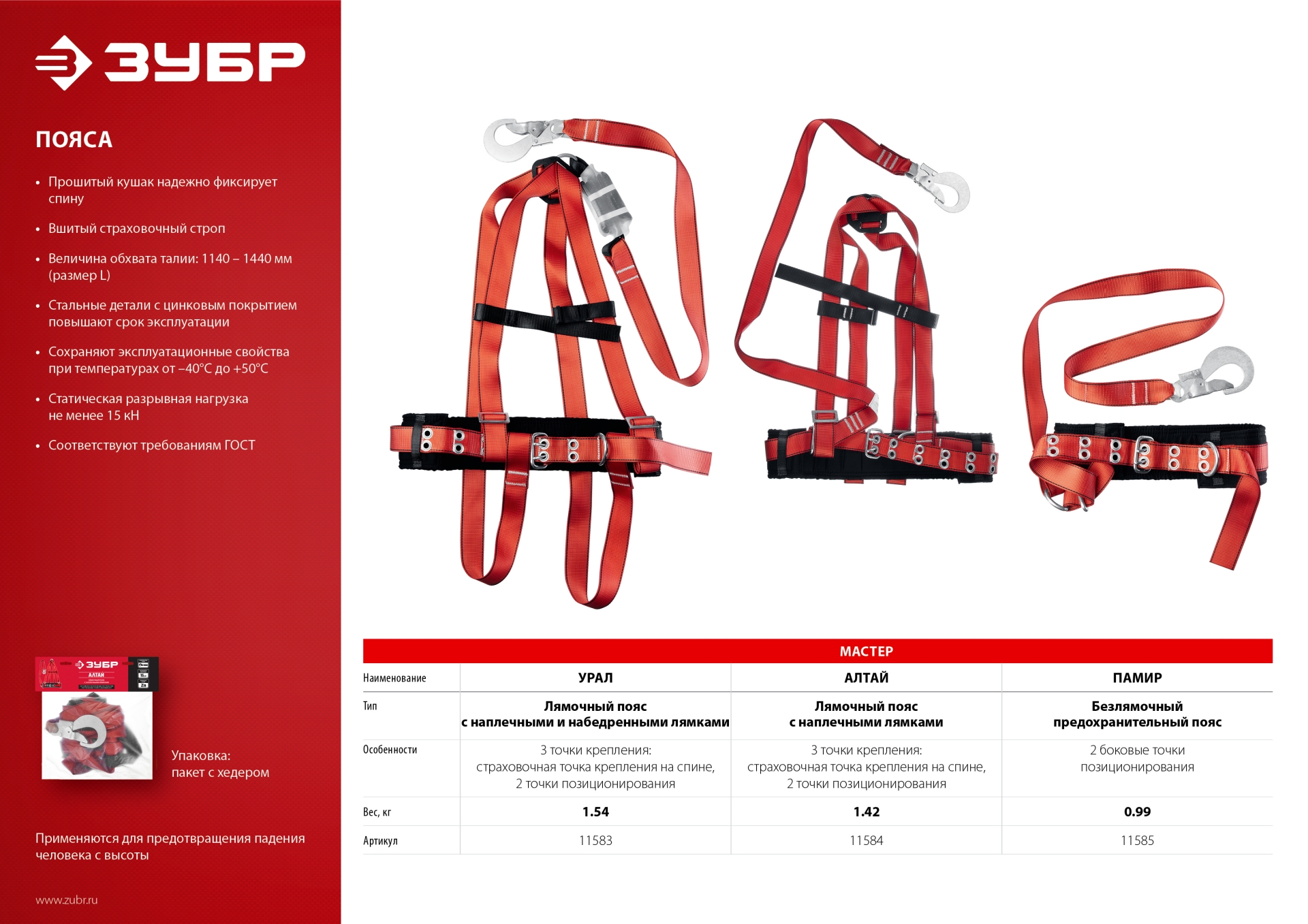 Безлямочный пояс «ЗУБР» – надежное средство защиты от падения с высоты.