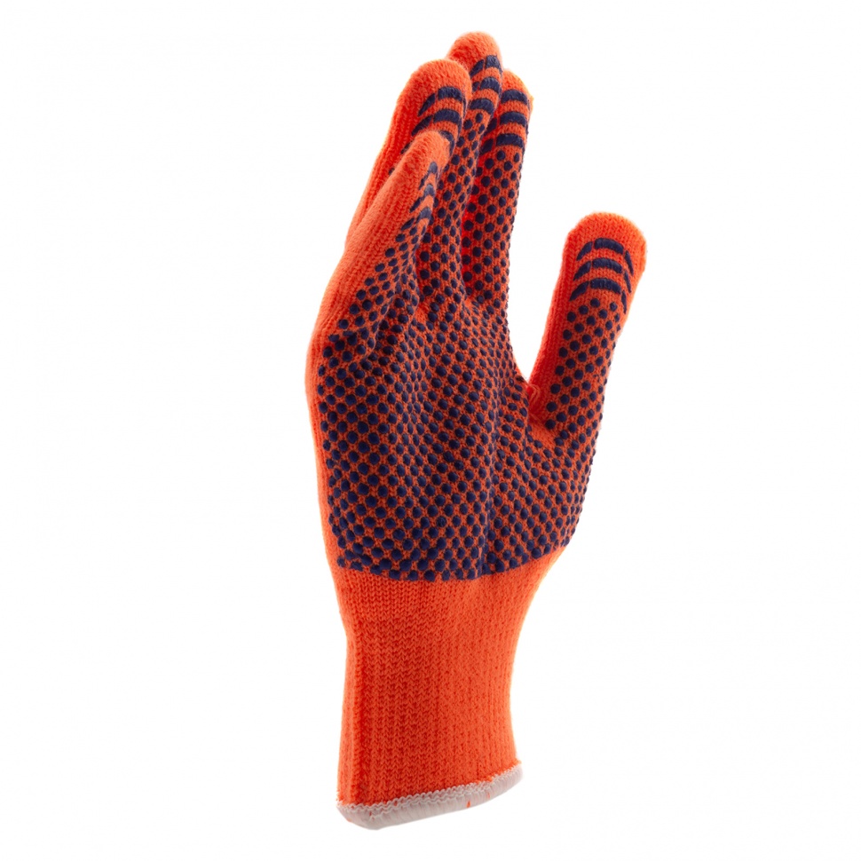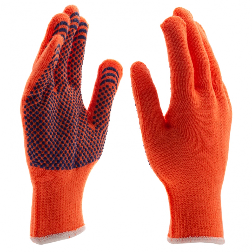 Перчатки трикотажные полиакрилонитрильные плюшевые Сибртех 67768 с ПВХ покрытием «точка», 10 класс вязки, 58 г, берегут руки от загрязнений, порезов, царапин и т.д. За счет плюшевого начеса изделия также защищают руки мастера от замерзания, поэтому они оптимальны для работ в холодную погоду. Пригодятся при выполнении строительных, механосборочных, такелажных и иных работ.ПреимуществаУстойчивость к истиранию и разрыву — перчатки выполнены из полиакрилонитрила.Точечное ПВХ-покрытие — инструменты и предметы различной формы не выскальзывают из рук.Сигнальный цвет — оранжевые перчатки заметны в условиях плохой видимости, что повышает безопасность работы.Эластичные манжеты — перчатки надежно фиксируются на запястье.