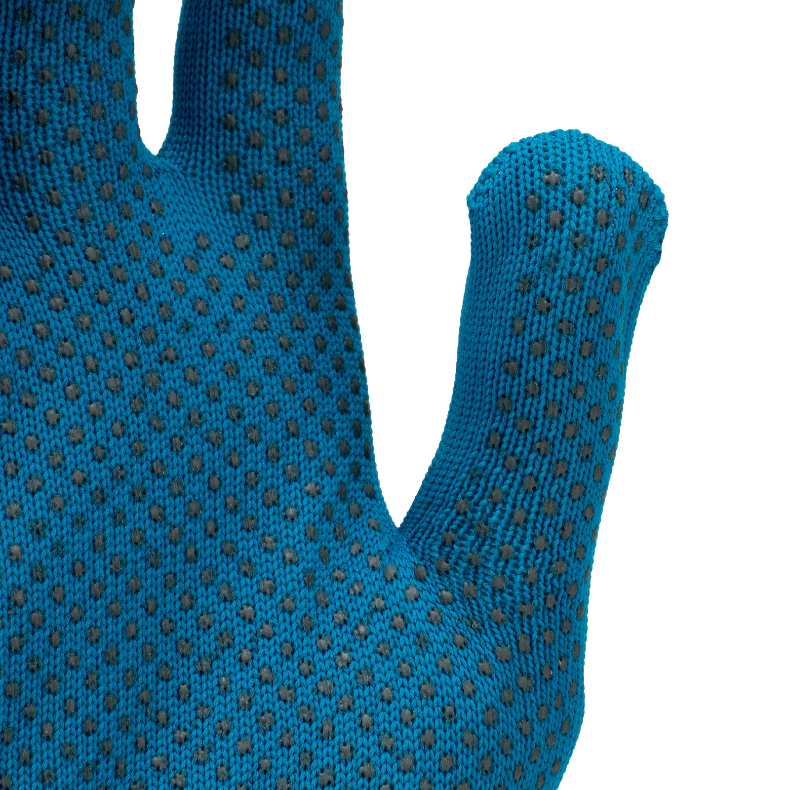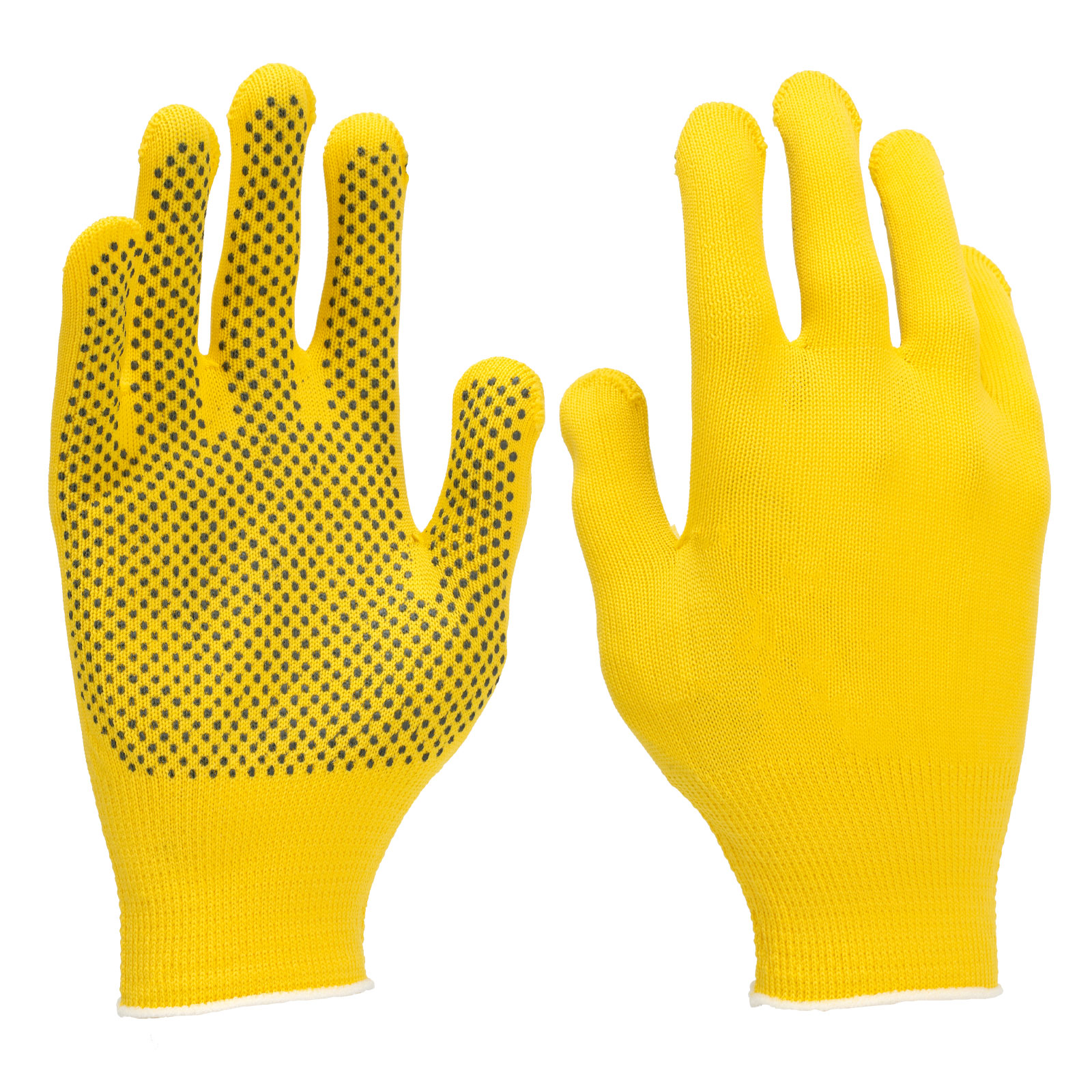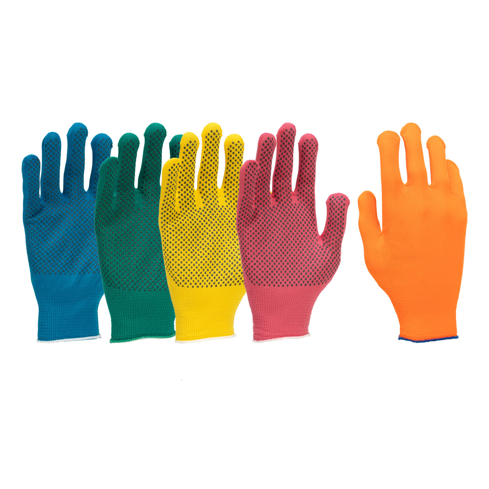 Перчатки Palisad 67854 размера L, с ПВХ-точкой, входят в набор из 5 пар разных цветов. Используются при проведении садово-огородных и строительных работ, требующих точности движений, будут полезны в профессиональной сфере и в быту. Защищают руки от царапин, порезов, ссадин и мозолей. Тонкое полотно обеспечивает высокую тактильную чувствительность пальцев. ПВХ-покрытие препятствует скольжению, помогая крепко удерживать инструменты и мелкие предметы.Обратите внимание — цвета перчаток могут отличаться от представленных на фото.ПреимуществаВысокое качество — перчатки изготовлены из нейлоновой пряжи плотной вязки (13 класс), они более износостойкие, чем хлопчатобумажные.Долговечность — точечное покрытие из ПВХ увеличивает сопротивляемость перчаток истиранию, продлевая срок их службы.Улучшенный воздухообмен — тонкое полотно позволяет коже дышать, поэтому даже при длительной работе руки не потеют.Плотная посадка — эластичные манжеты надежно фиксируются на запястьях, поэтому перчатки не сползают с рук.Гипоаллергенность — ткань приятна на ощупь и безвредна для здоровья.Безопасность — перчатки яркой расцветки удобны для работ в условиях плохой видимости.