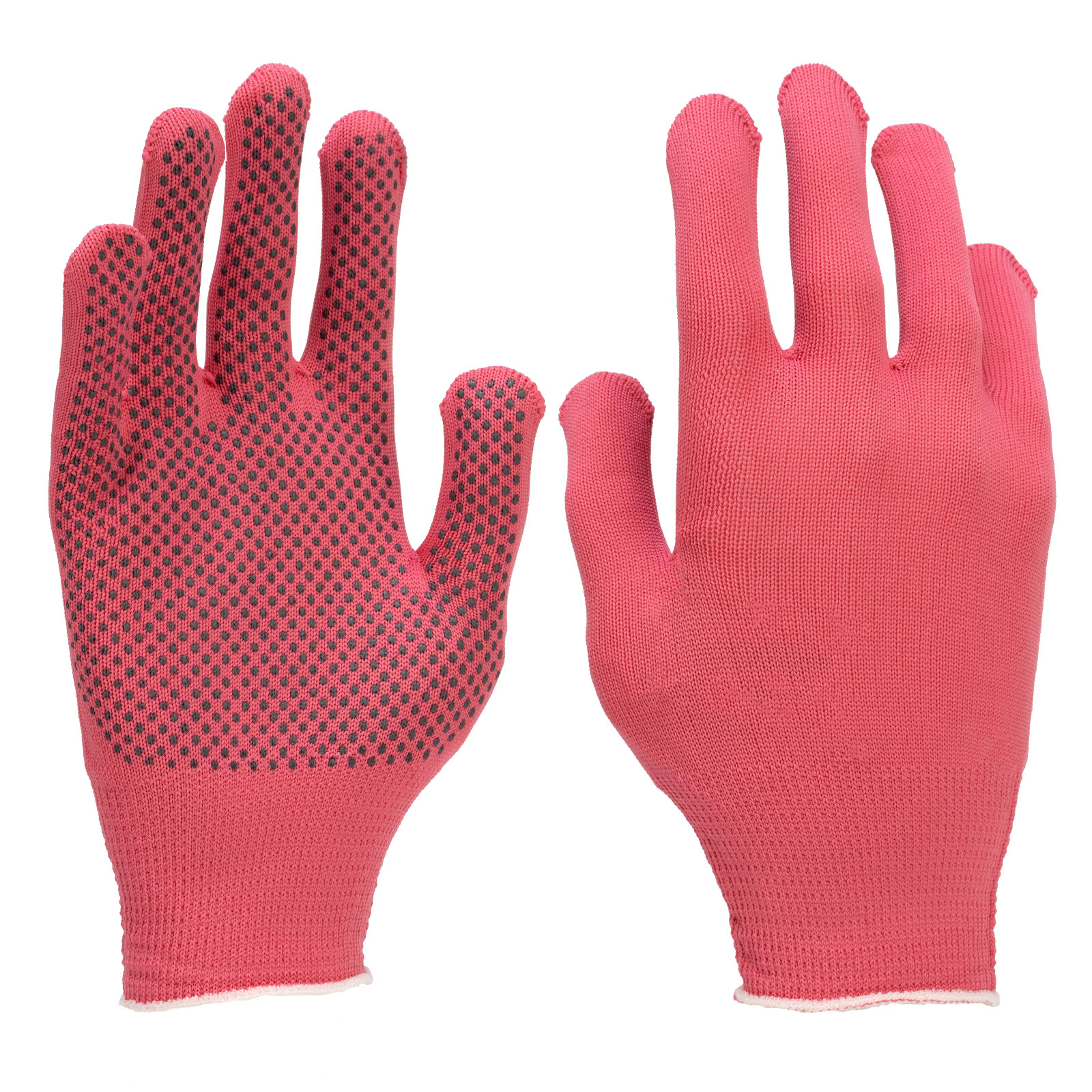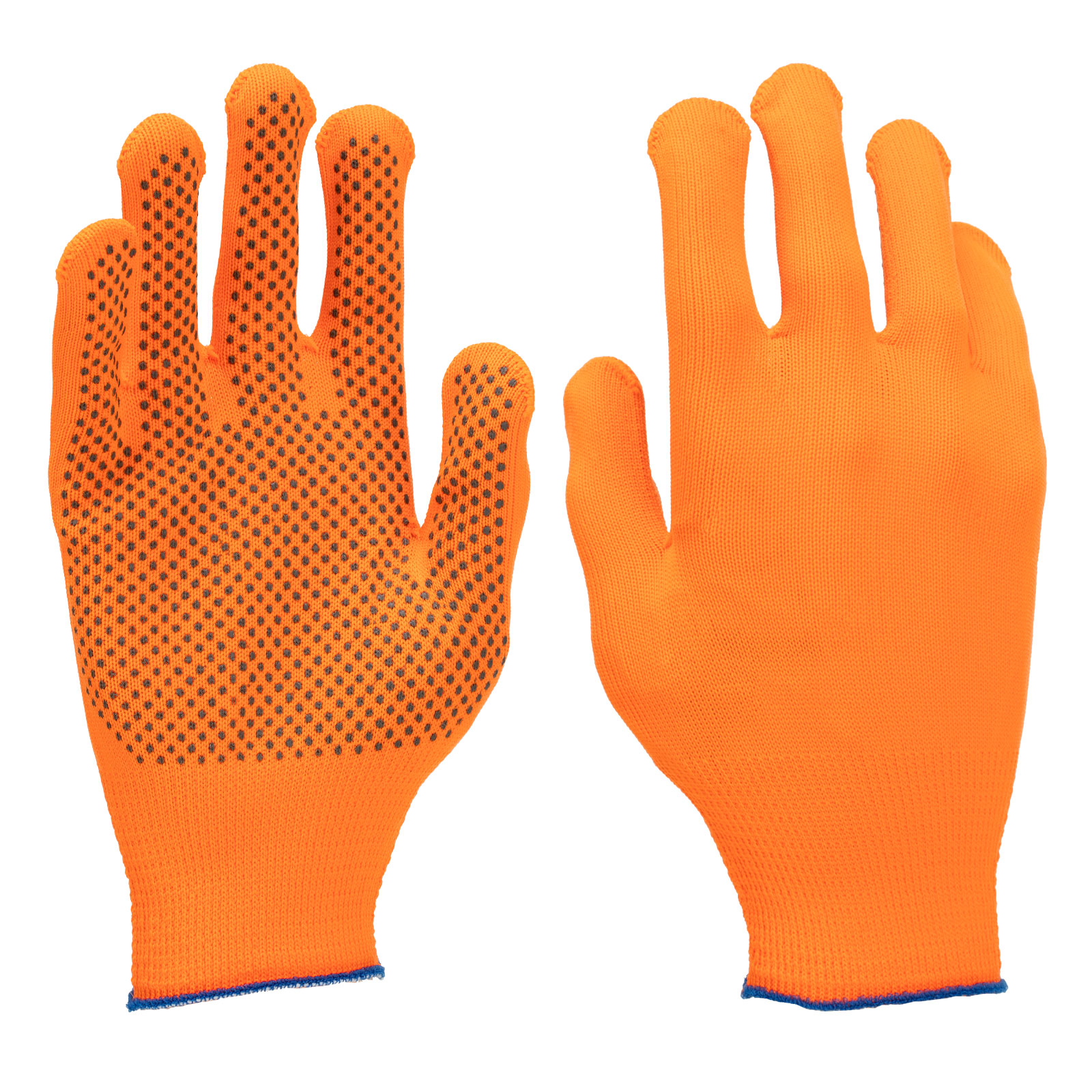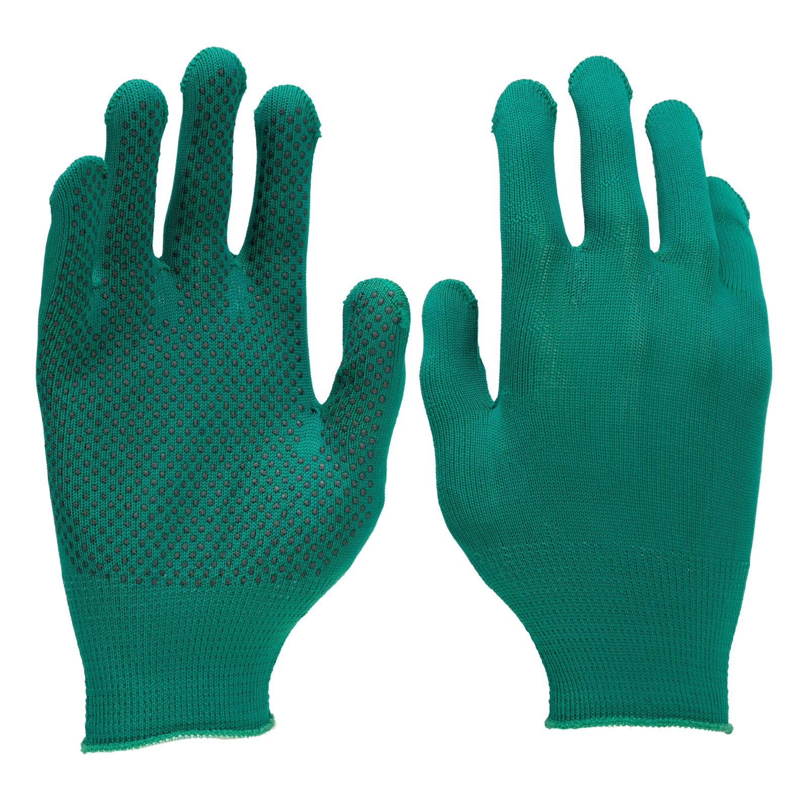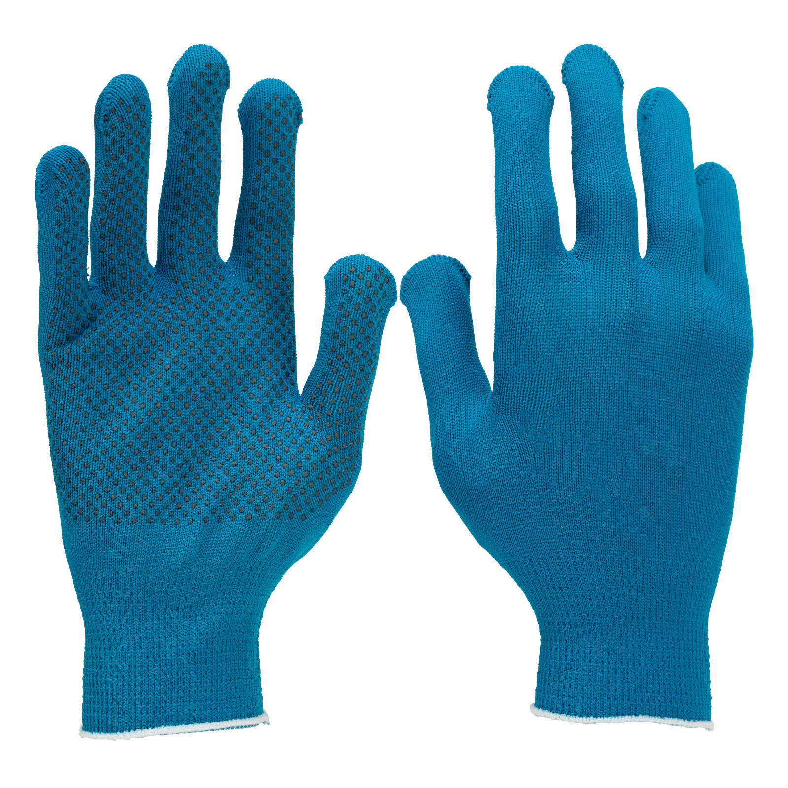 Перчатки Palisad 67854 размера L, с ПВХ-точкой, входят в набор из 5 пар разных цветов. Используются при проведении садово-огородных и строительных работ, требующих точности движений, будут полезны в профессиональной сфере и в быту. Защищают руки от царапин, порезов, ссадин и мозолей. Тонкое полотно обеспечивает высокую тактильную чувствительность пальцев. ПВХ-покрытие препятствует скольжению, помогая крепко удерживать инструменты и мелкие предметы.Обратите внимание — цвета перчаток могут отличаться от представленных на фото.ПреимуществаВысокое качество — перчатки изготовлены из нейлоновой пряжи плотной вязки (13 класс), они более износостойкие, чем хлопчатобумажные.Долговечность — точечное покрытие из ПВХ увеличивает сопротивляемость перчаток истиранию, продлевая срок их службы.Улучшенный воздухообмен — тонкое полотно позволяет коже дышать, поэтому даже при длительной работе руки не потеют.Плотная посадка — эластичные манжеты надежно фиксируются на запястьях, поэтому перчатки не сползают с рук.Гипоаллергенность — ткань приятна на ощупь и безвредна для здоровья.Безопасность — перчатки яркой расцветки удобны для работ в условиях плохой видимости.