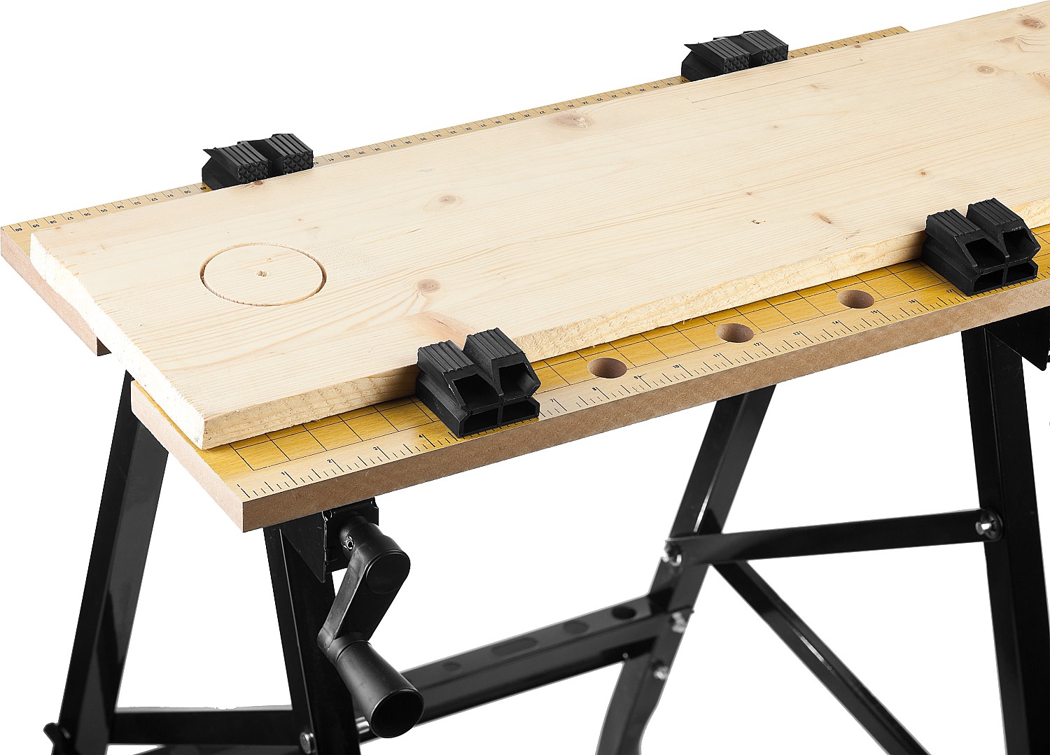 Удобный верстак для столярных и слесарных работ. Применяется при обработке материалов и различных форм заготовок. Очень мобильный, не тяжелый, занимает мало места при хранении.
