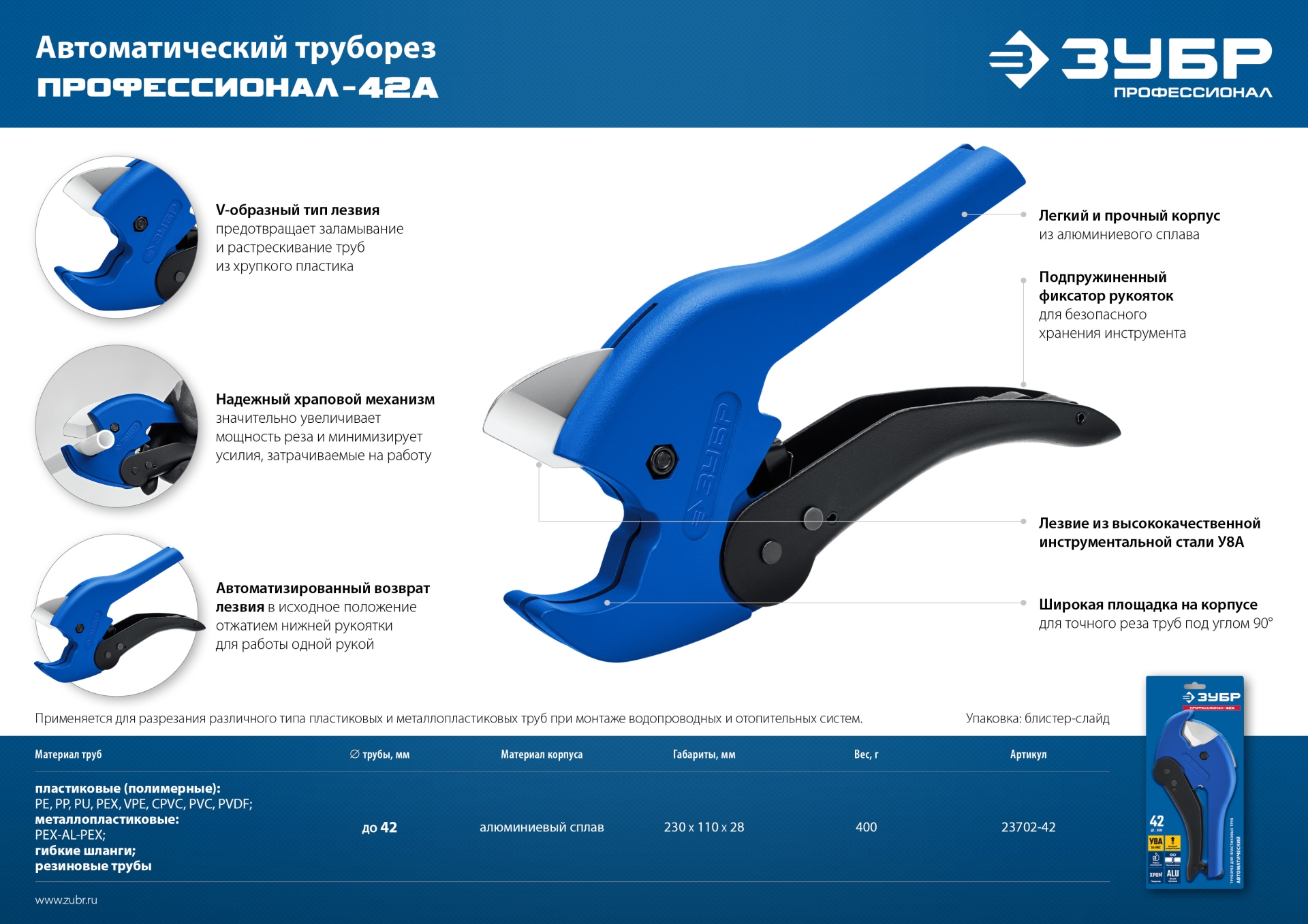 Для разрезания различного типа пластиковых и металлопластиковых труб при монтаже водопроводных и отопительных систем.