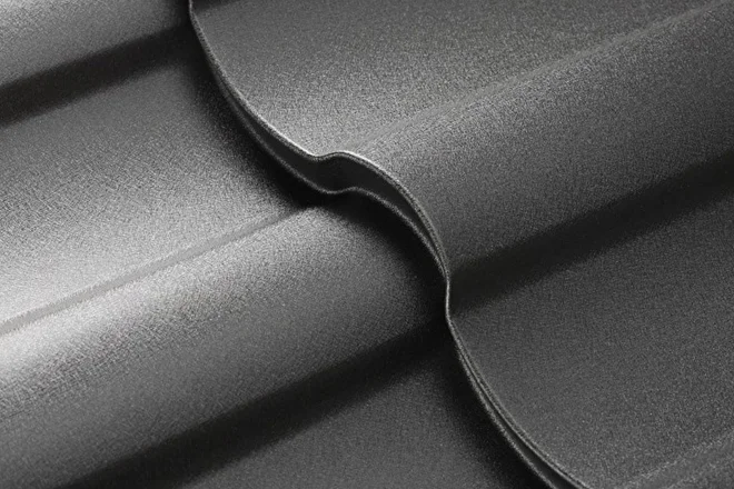 Металлочерепица "Террано" изготавливается из оцинкованной стали с полимерным покрытием, что позволяет ей не намокать, не выцветать и легко переносить различные атмосферные и механические воздействия.