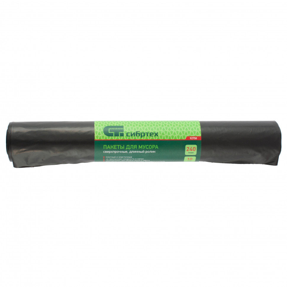 Сверхпрочные пакеты для мусора Сибртех 92750 из ПВД, объемом 240 л, 10шт. в длинном ролике, применяются для сбора мусора на даче, строительной площадке, во время уборки территории. Они рассчитаны на транспортировку как легкого бытового, так и тяжелого строительного мусора, в том числе с острыми краями. Пакеты устойчивы к воздействию химических веществ и агрессивных сред, поэтому подходят для утилизации практически любых отходов.ПреимуществаСверхпрочные пакеты из полиэтилена высокого давления плотностью 60 мкм обладают высокой устойчивостью к разрыву и износостойкостью.Специальная перфорация обеспечивает легкое отделение пакетов от рулона.Прямое дно предотвращает появление пустот в пакете, поэтому он заполняется полностью.10 пакетов объемом 240 л хватит на сбор большого количества мусора.