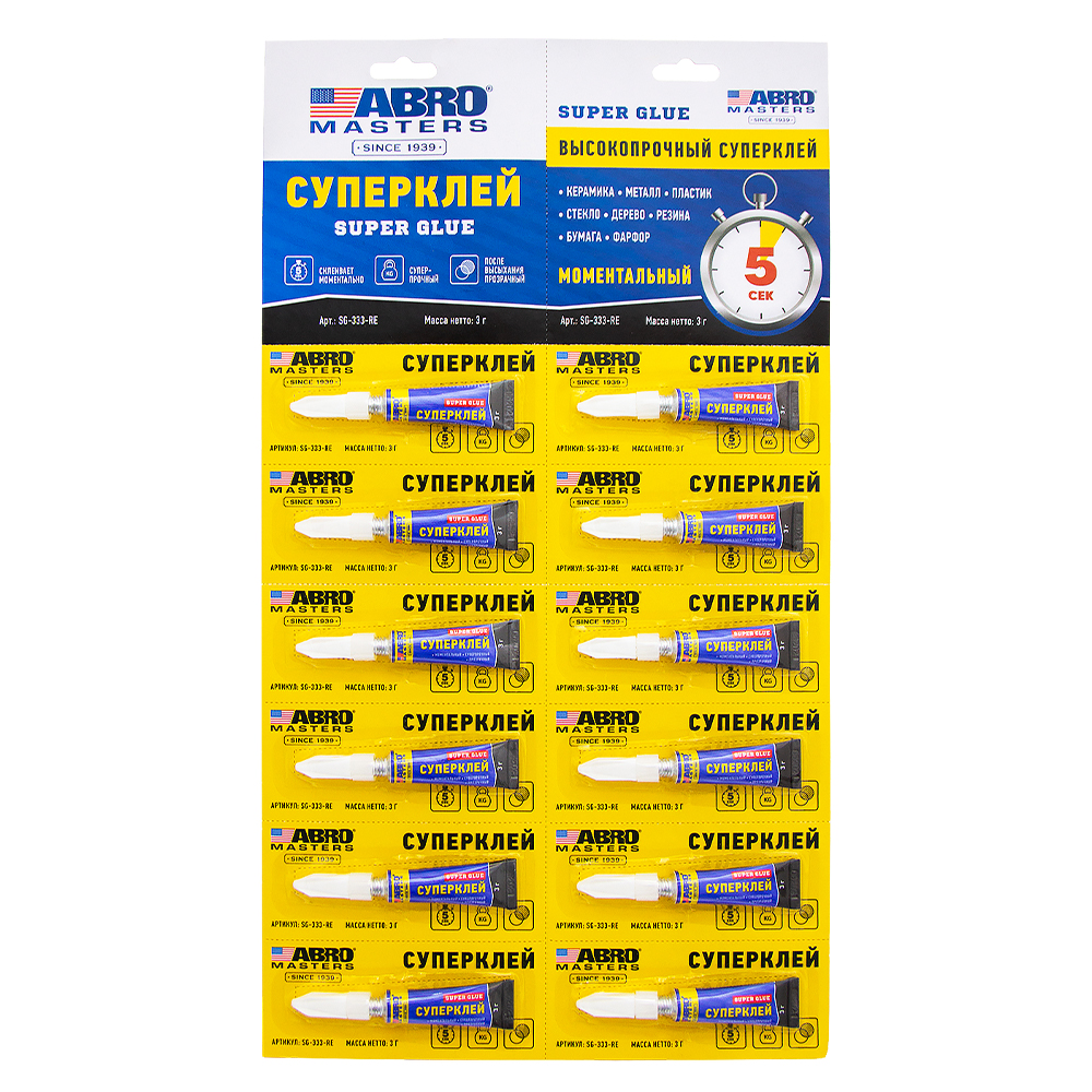Суперклей на блистере ABRO MASTERS 3 г х 12 шт.